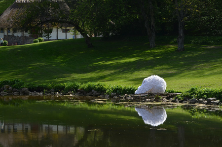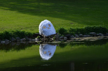 Vanitas objects are an old symbolic in the arts of the inevitability of death and the transience and vanity of earthly achievements and pleasures. This feathered skull is fixed to a transparant boat, ready to cross the waters, may also be seen as a tribute to the beauty of life.