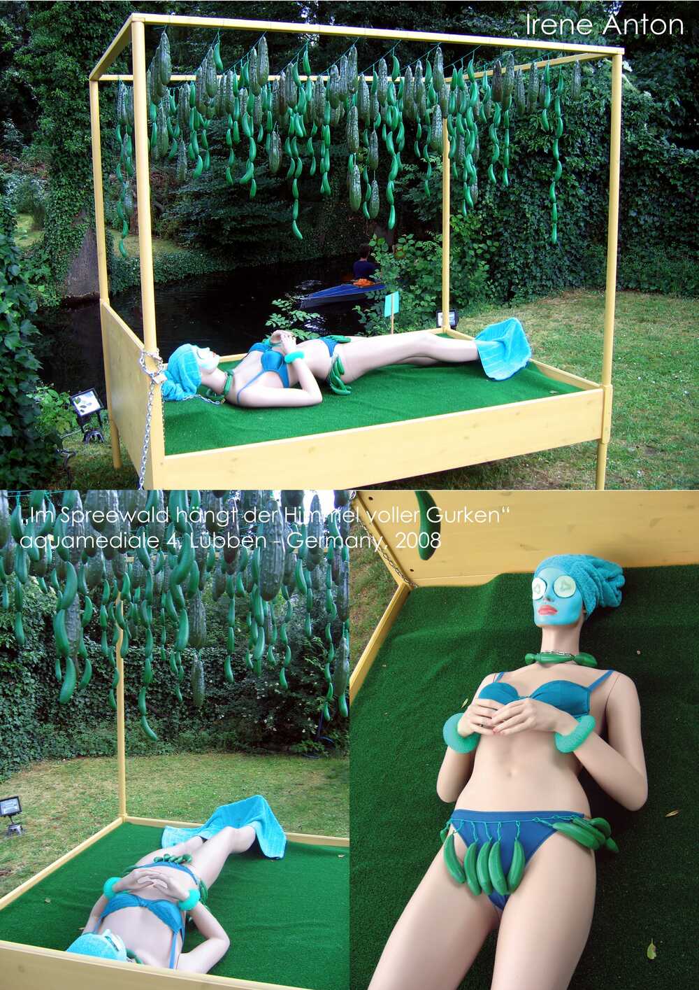 Moderne versus Tradition - satirische Installation zum volkstümeligen Spreewälder Gurkenkult und sogenannten Wellness in ländlichen Regionen, im Rahmen der aquamediale 4, Lübben (Kunstpreis aquamediale 4)