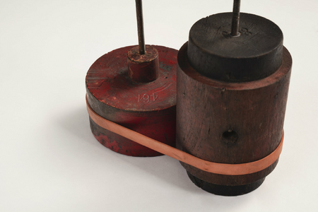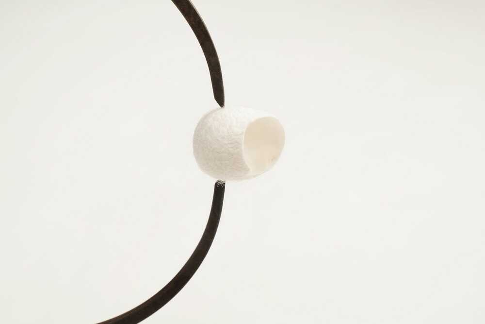 Found wood gears and compass, silk cocoon, steel, elastic band