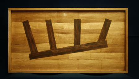 Pues nada, coincidieron esas dos situaciones y un dĂa deshice el tonel y me planteĂ© hacer un cuadro. La verdad es que no tenĂa yo la cabeza para trabajar la creatividad y la imaginaciĂłn. Hice algo simple y me gustĂł la sensaciĂłn, sobre todo por que me relajaba y me generaba una serenidad interior que no disponĂa. Como enseguida gastĂ© las duelas, localicĂ© una bodega cercana y fui comprando barricas en la medida que se agotaban.