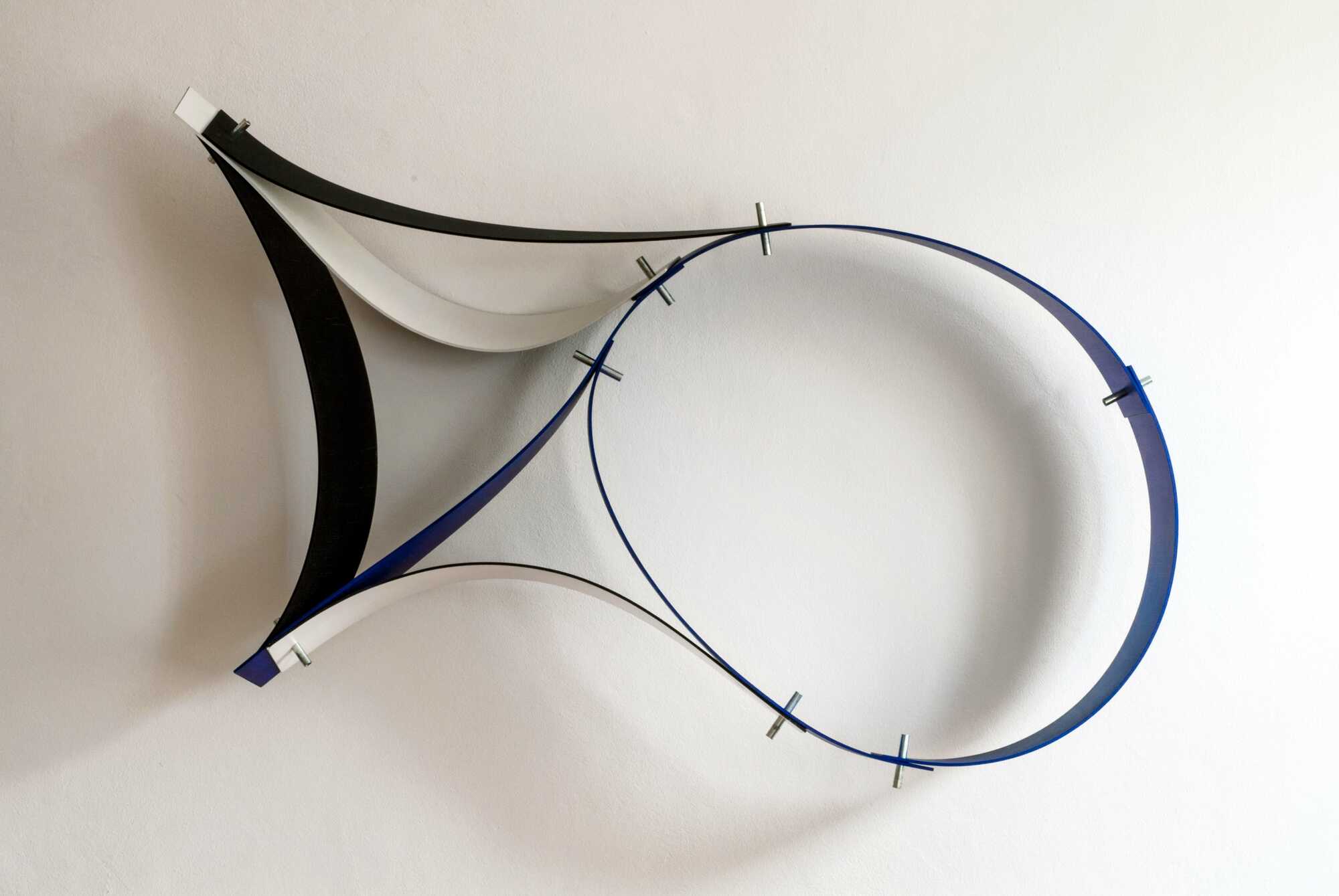 Die Objekte haben kein Oben und kein Unten und können beliebig herum gehängt werden, wodurch der Eindruck entsteht, als hinge immer wieder ein neues Objekt (Gesamtform) an der Wand, obwohl die Struktur immer die gleiche ist.