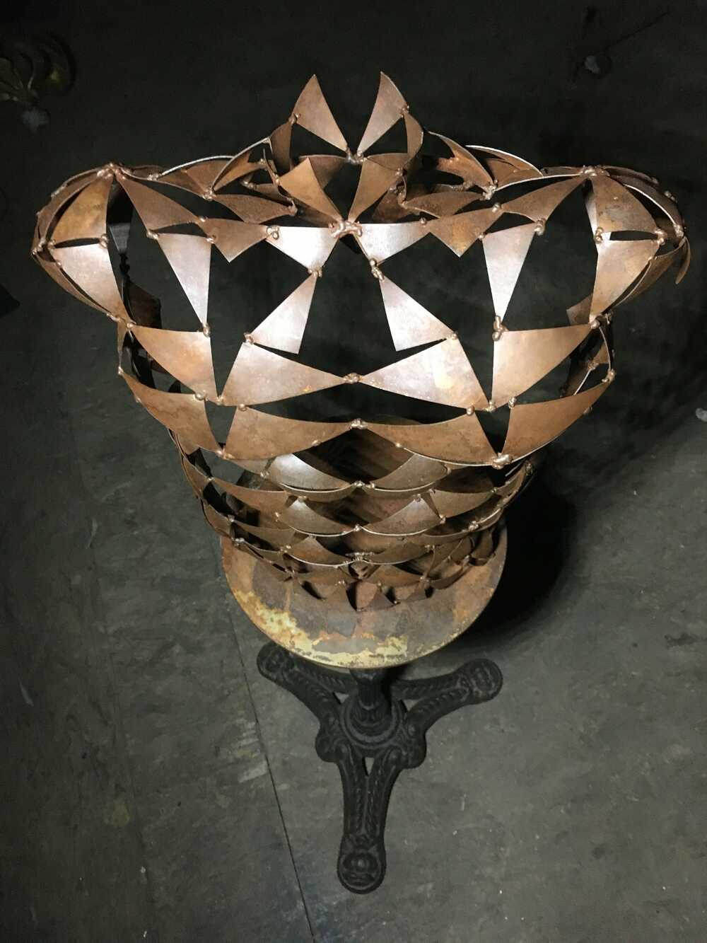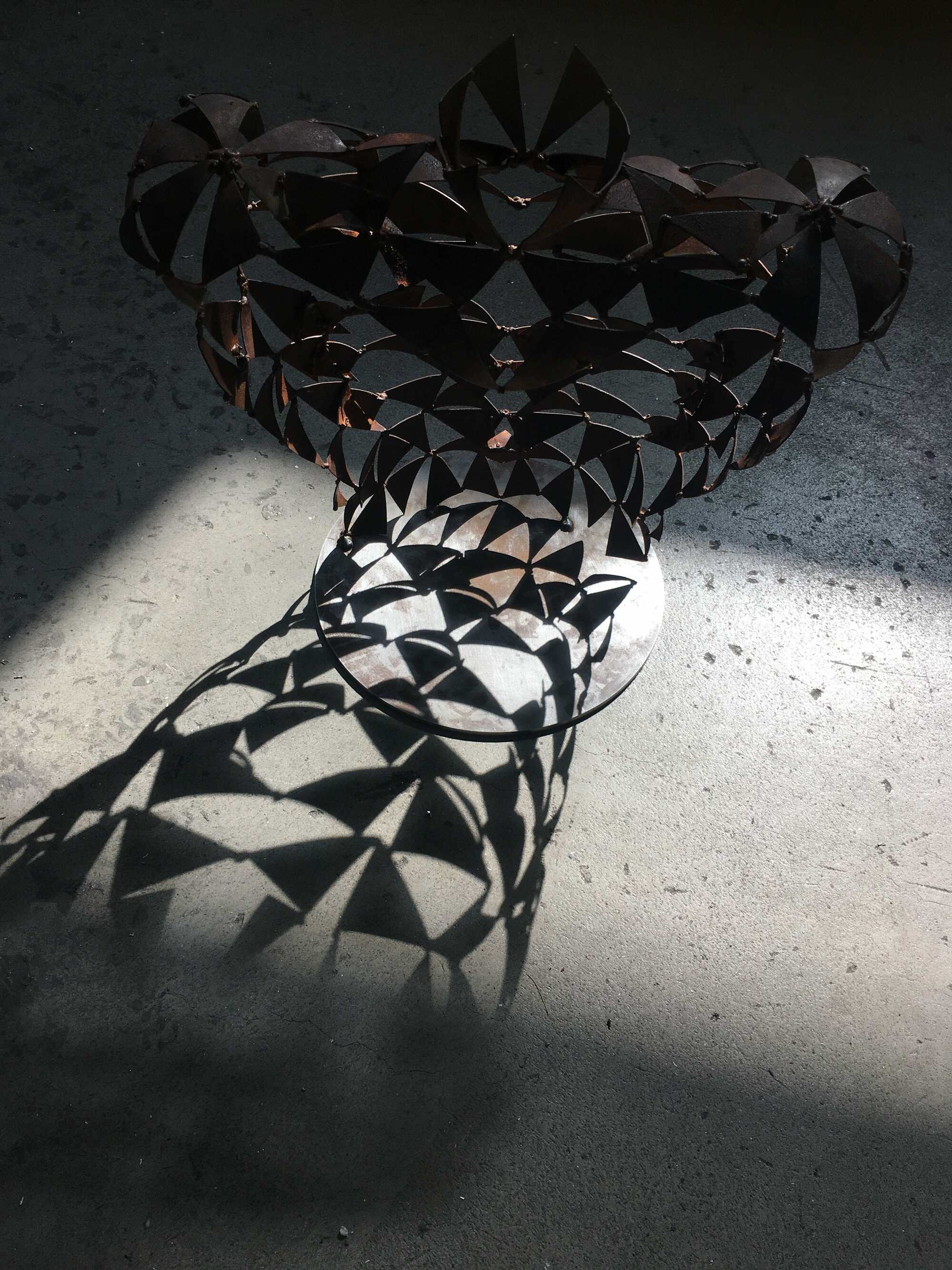 Mit Hammer auf Amboss geformte Eisendreiecke zur Figur verschweißt,