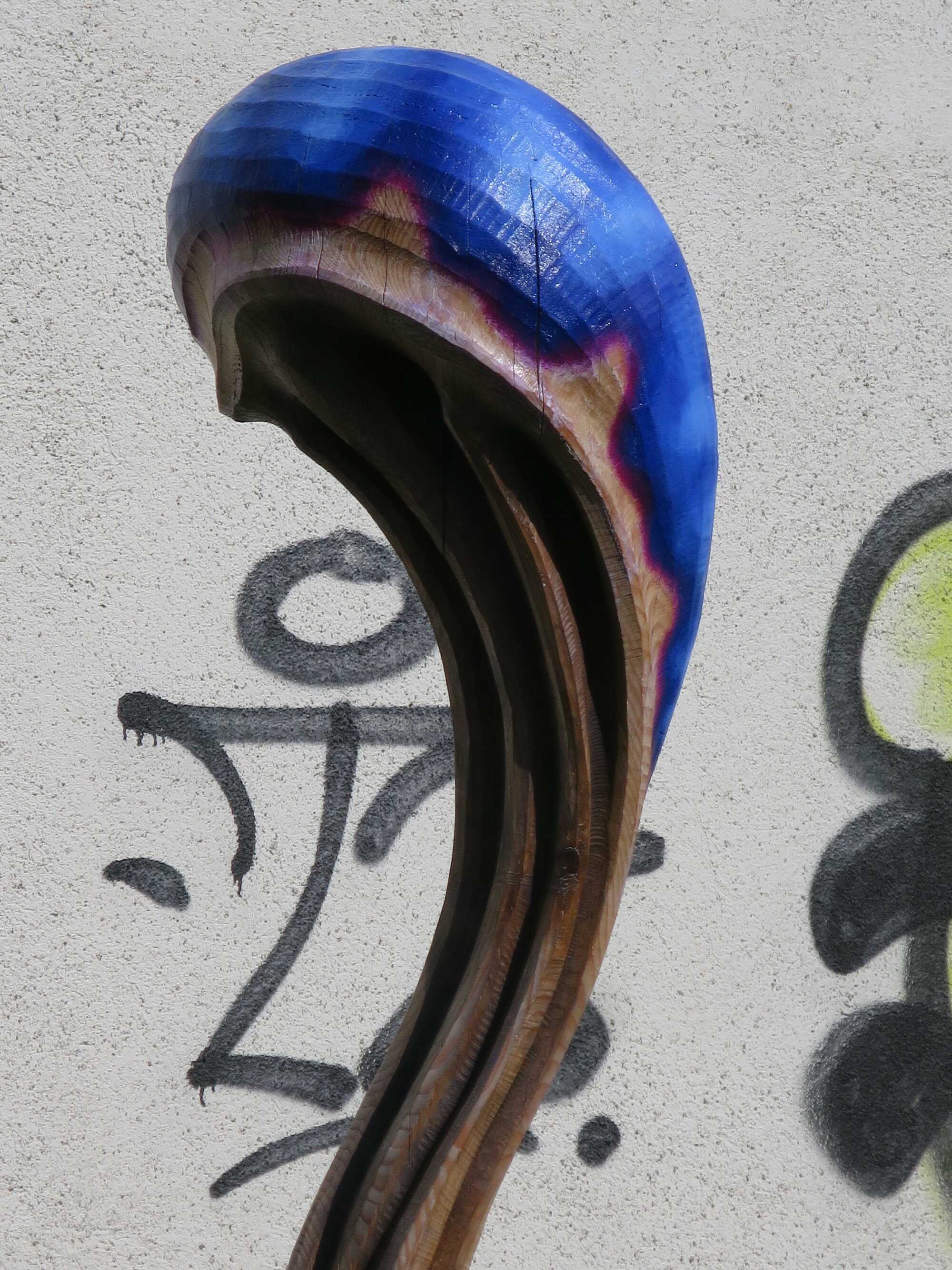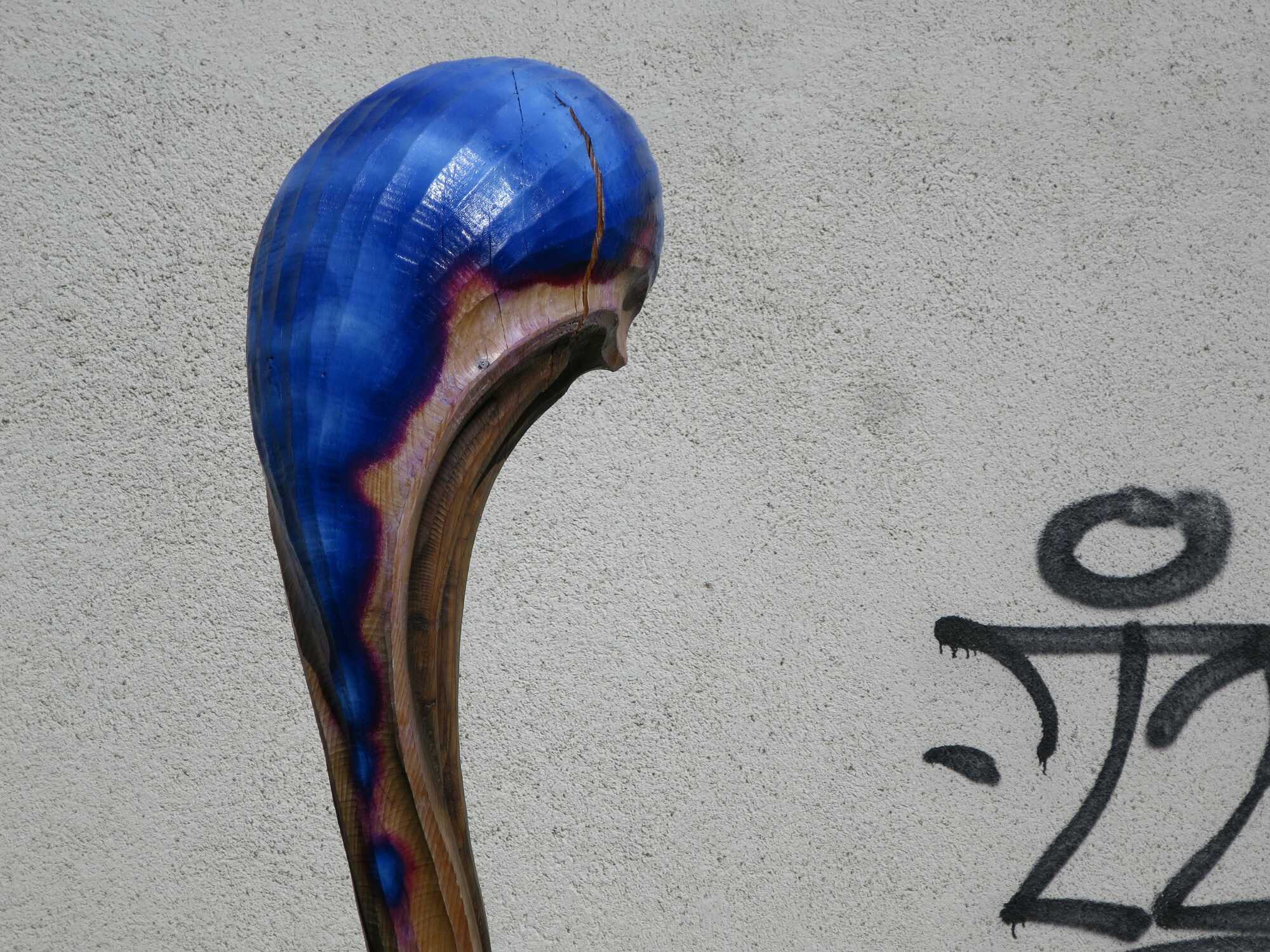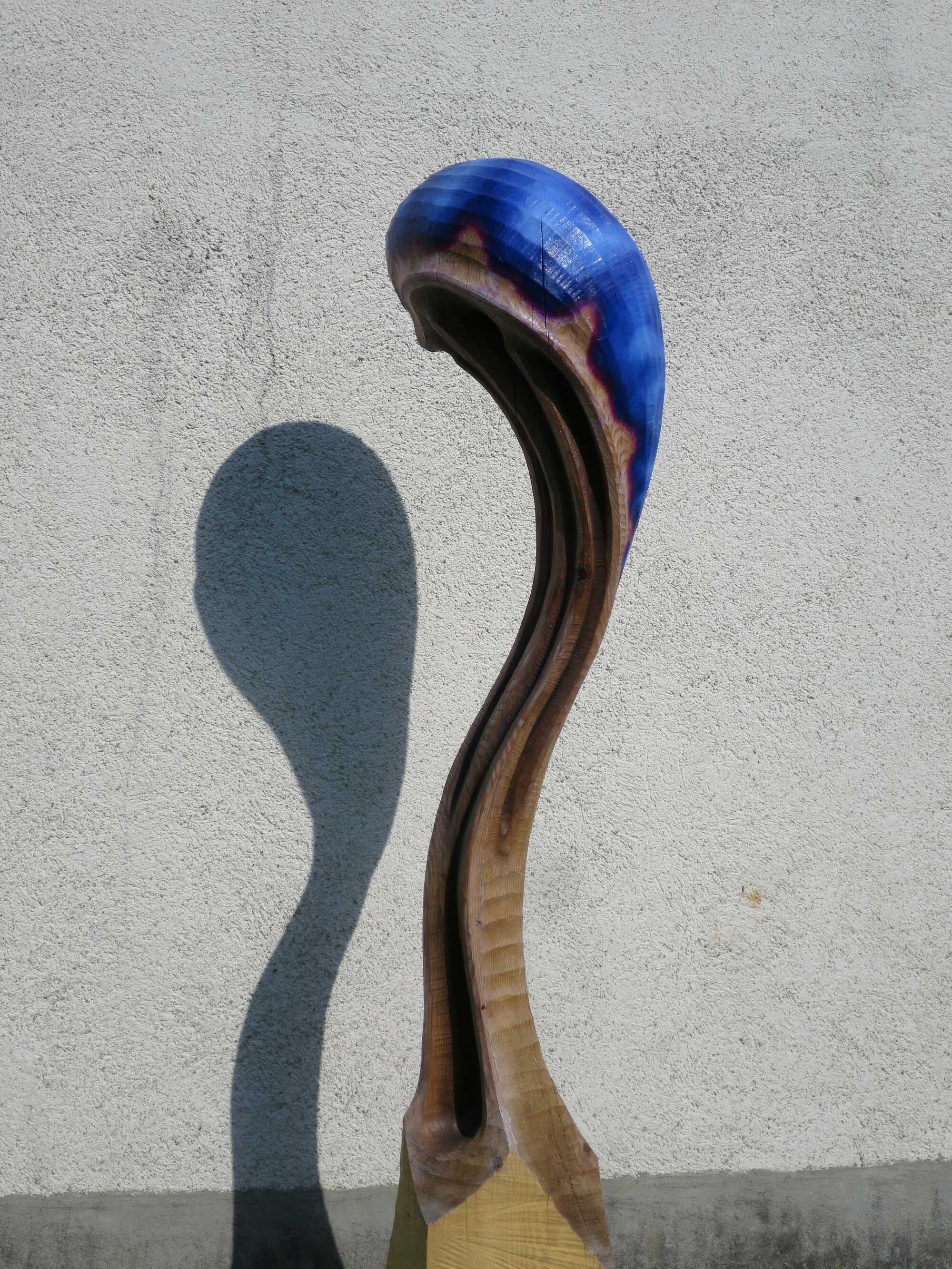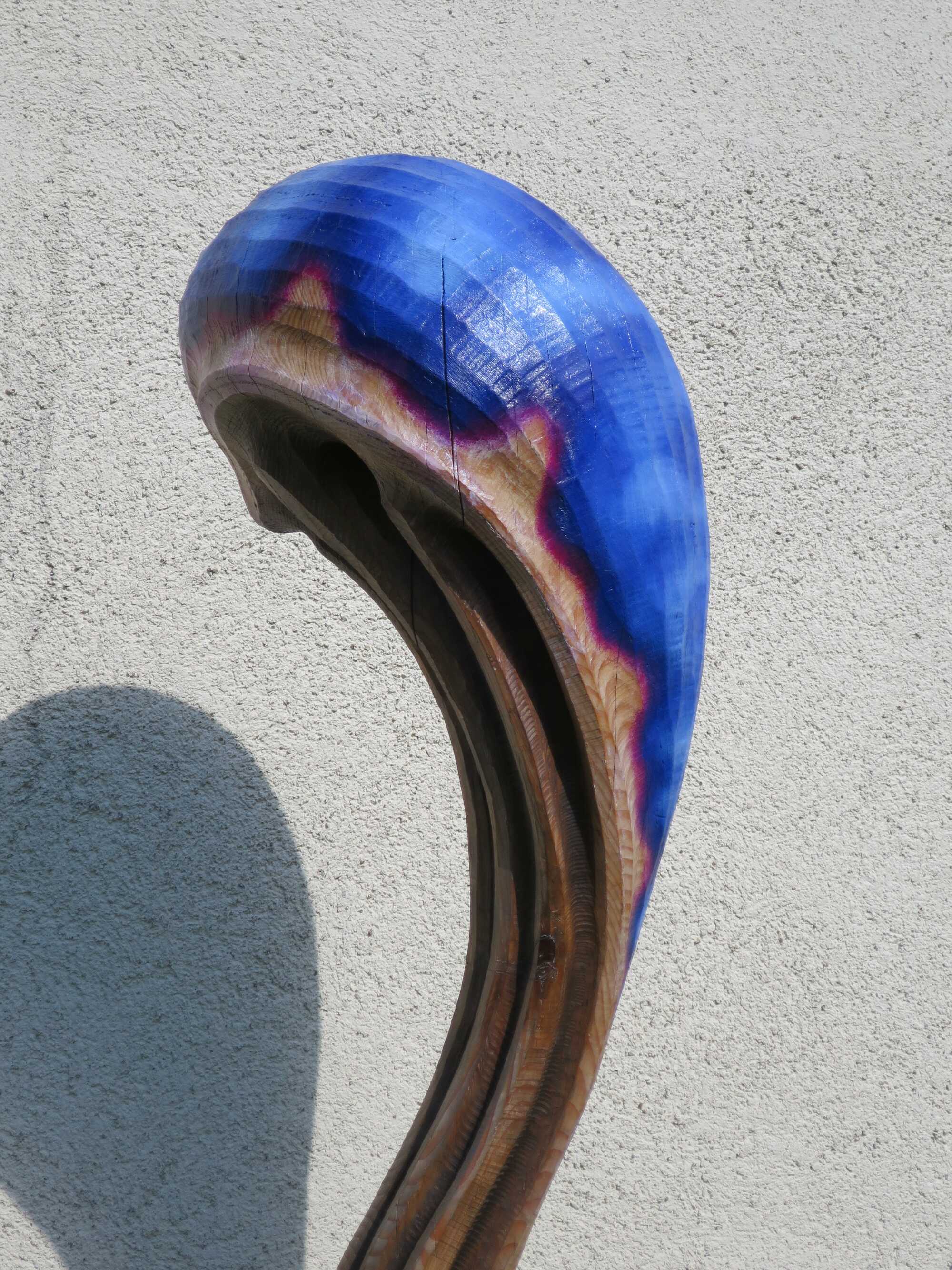 Eine bewegte, beinah organisch gewachsene Form die im Betrachter eine Suche nach Definition auslöst, ihren Wert aber in der Suche kurz vor Vollendung der definitiven Bezeichnung findet. Der Blick aus dem Augenwinkel, das unmittelbar auftretende Gefühl, welchem der Intellekt hinter her jagt.