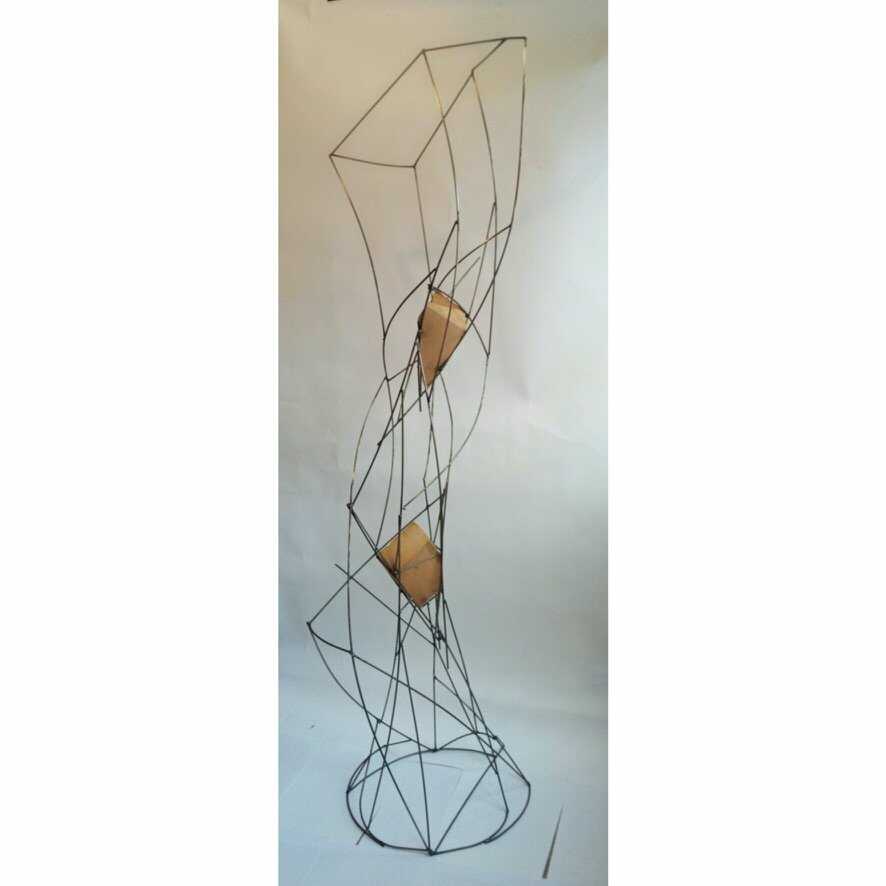 iron rod and wood sculpture representing a barroque column.