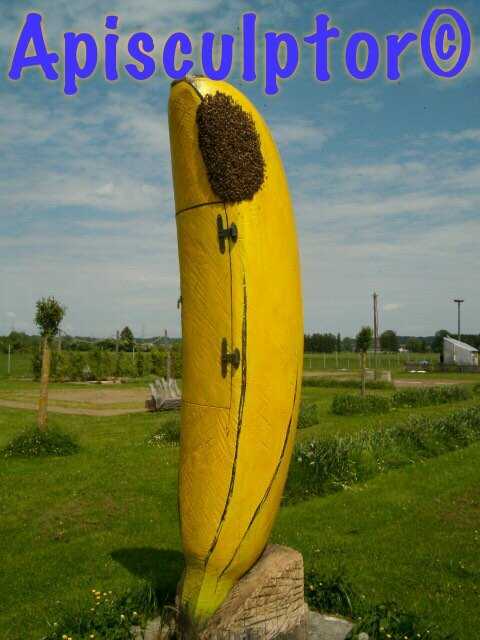 Bienen und Kunst, muß das sein? Baumstamm und Bienen, waren schon immer eine Einheit. Kunst und Banane gehen seit Thomas Baumgärtel auch gemeinsame Wege. Damit auch im Öffentlichen der Raum für Kunst wegweisend wird, hier die Banane, dreidimensional. Und die Bienen. Sie bestäuben ganz nebenbei das Umfeld; eine Befruchtung, die wir uns auch von der Kunst wünschen.