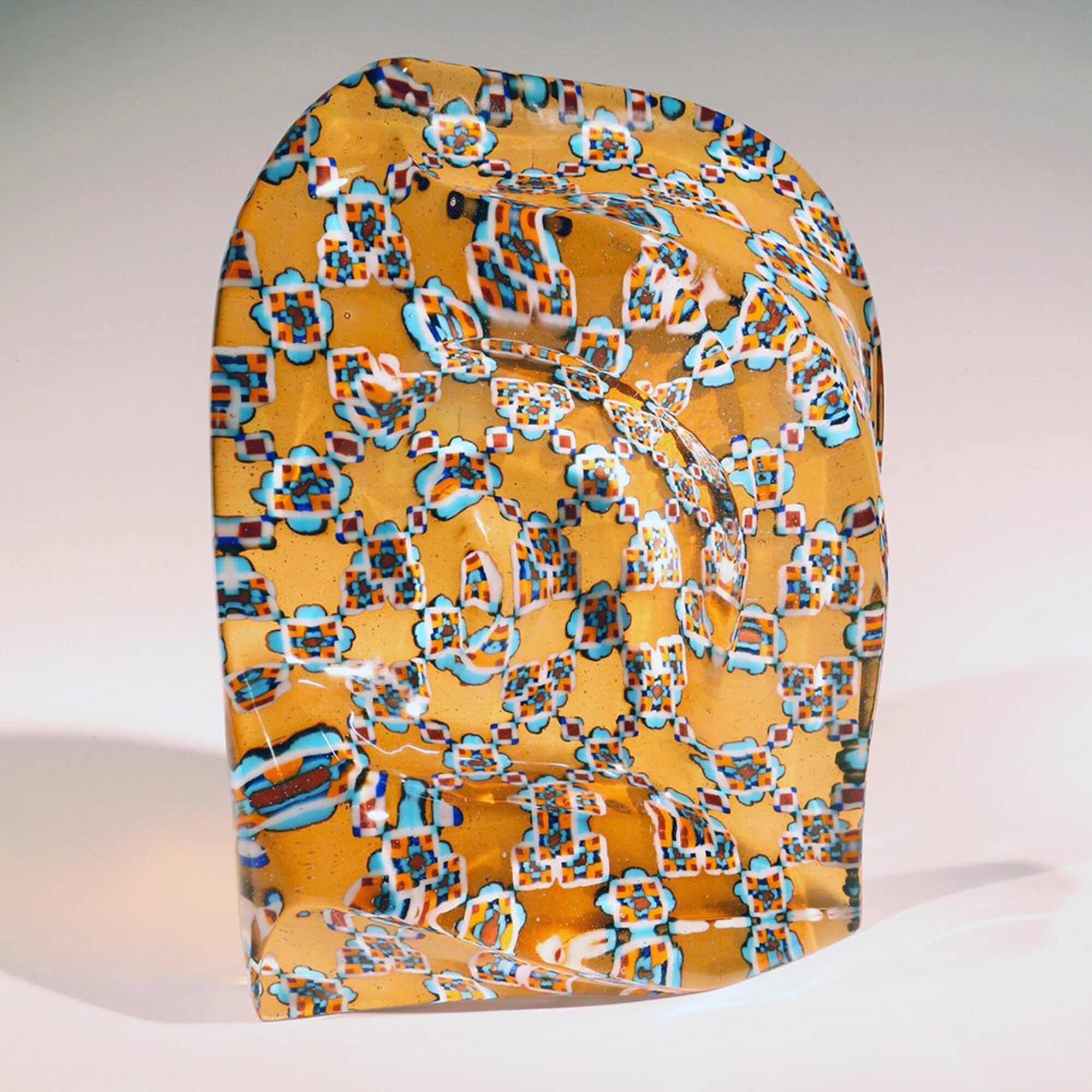 Glass optics and murrine pattern combine to create a moving and ripling visual reaction when the viewer moves and interacts with the works.