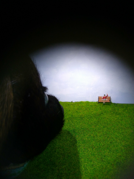 This work has 5 peeping boxes. The inside sceneries are visible by peeping through a hole on the boxes.