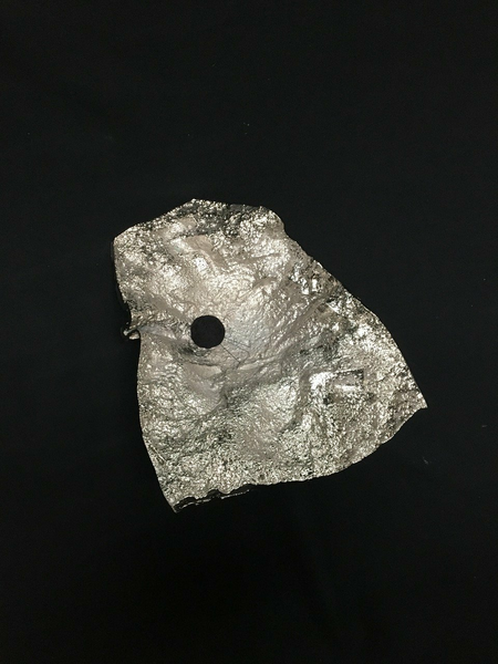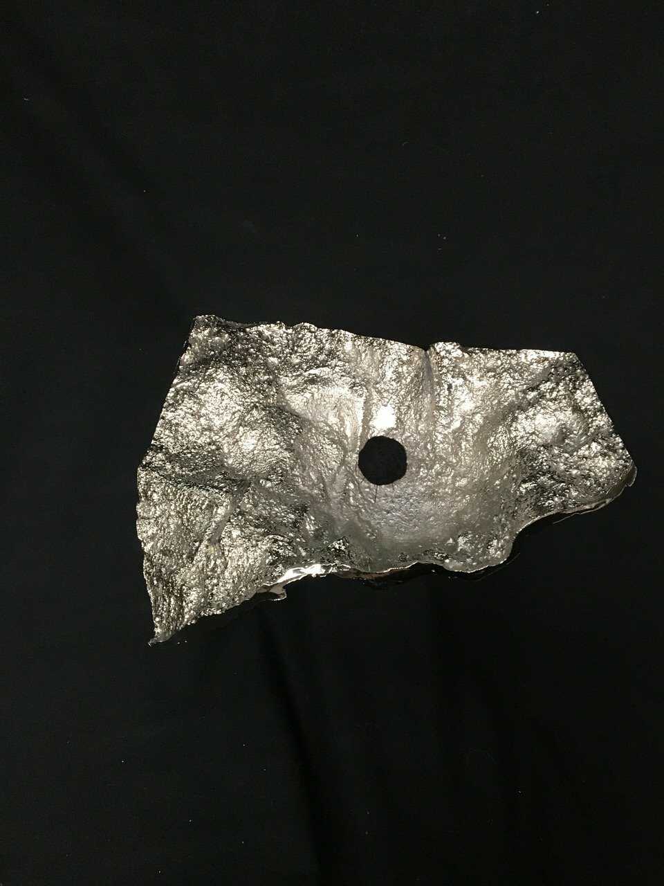 Gravity curves space and time. Inspired by Einstein's Theory of space-time, I made a small yarn ball to 'curve' the galvanized bronze. The string itself corresponds to the size of my studio walls. The bronze sculpture is an imprint of the positive/negative of the walls of the Roman catacombs.