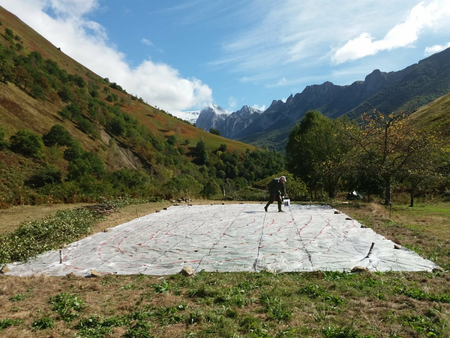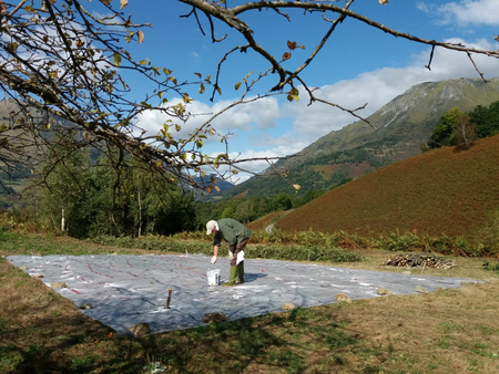 I was struck by the image of Accous and its valley, and the fact that it has always been an important transit point to the Iberian Peninsula, connected to a route like that of Santiago de Compostela which follows paths of even older routes that linked the old continent to the four corners. I thought about how the two great mountain ranges of the Pyrenees and the Alps, far from being physical barriers in reality thanks to their valleys, have always favored exchanges and movements. I thought of an ideal link between the Aspe valley and "my" Val di ViĂą, part of a path that crosses the Italian peninsula and the Alps connected Greece with England, a route taken later in the Middle Ages by pilgrims from all over Europe to Rome and Holy Land. I thought that in such a place a labyrinth, symbol of spiritual journey, could find an ideal location. I thought of current events. The theme of travel, thinking of how the labyrinth can express the complexity and the labors and tortuosity of those who travel out of necessity and for change, in search of a better life for thousands and thousands of kilometers, and how the Alps and the Pyrenees, always a place of connection and exchange, become insurmountable barriers due to new frontiers dictated by man. Moreover, I think of the fingerprints taken, the thumbprints, taken even by young children so that men can lay down, imprison, and repel other men.
