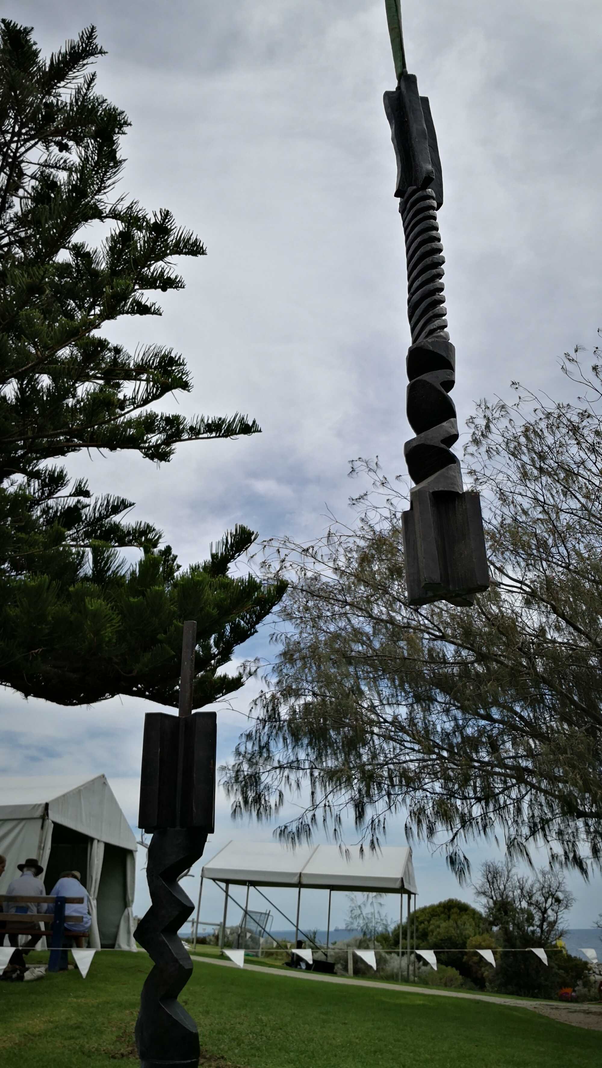 The “DOUBTING COLUMN” as AXIS MUNDI represents stability as well as the magic we need to live, both: magic and stability. Trunks of oaks carved with geometric shapes: spirals, cylinders, cubes looking for harmony in the volumetric bodies... Trunks of oaks for firewood blackened, charred, superimposed on a fragile balance, form a column of 400 cm height Remains of magical trees, oaks, forests of Mallorca, the Tramuntana. And all of a sudden Australia burns. The bronze cast with fire becomes a column of burnt logs. Ancestral techniques, liquid metal penetrates. This work has acquired a symbolic character, brutal due to recent events. (Unintentionally) It's a representation of GLOBAL WARMING. The worst nightmares of destruction have transcended our reality. Burning forests, scorched earth, dead animals With this sculpture I want to say ENOUGH