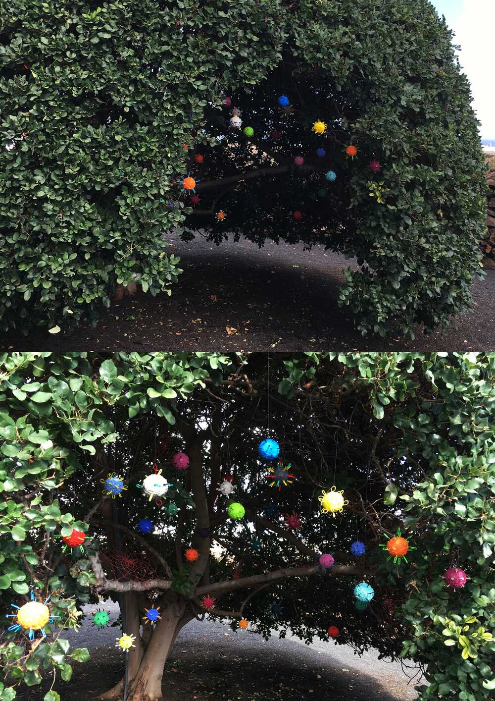 Follow-up installation, based on "virus garden" from 2015, in the garden of Galería de ARTENMALA, Lanzarote-Spain.