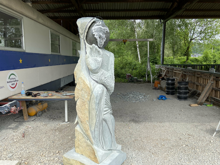 8 artists have created this sculpture working on it one after the other without knowing what they would find starting their work. No communication while the process. Each artist had complete freedom to even overwork, what the presessors had created.