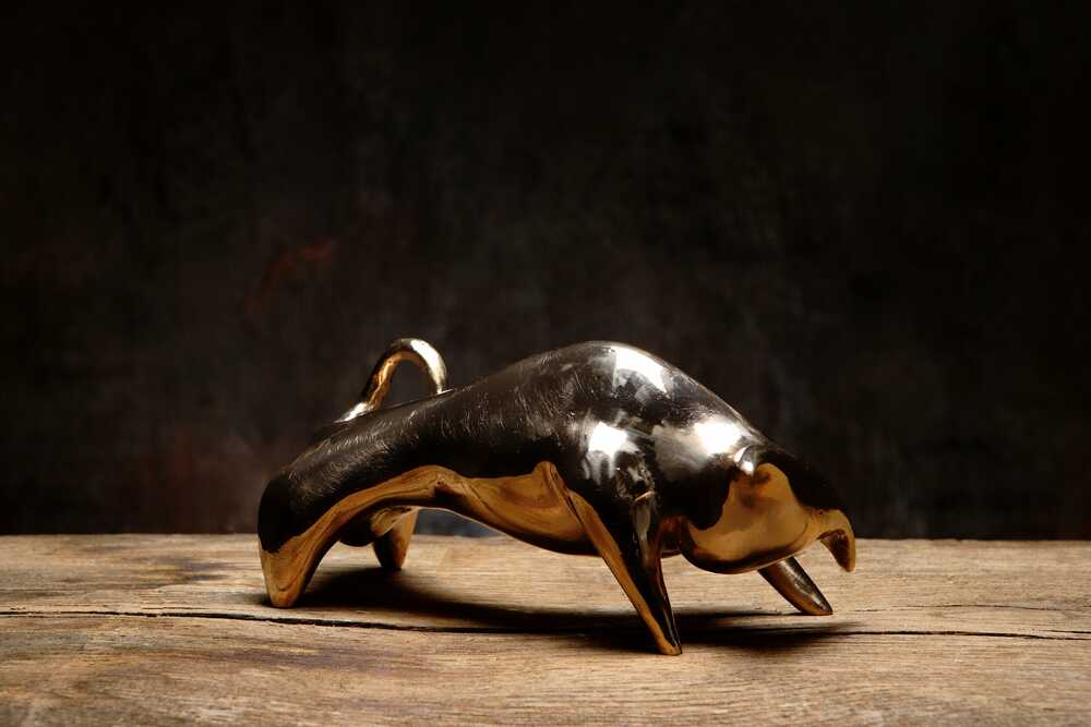 This strong little bull, the emblem of financial success on Wall Street! He may be small but don't mess with him! A great paper weight on the desk of the desk of the rich and famous.