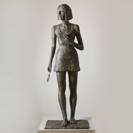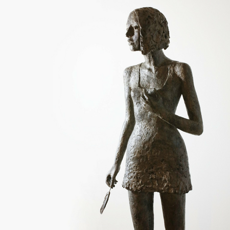 Mittels des Lastens des Körpers visualisiert Susanne Kraißer die Bindungen und Zwänge des Subjekts, während der nach innen gerichtete Blick sowie die auf der Brust liegende Hand die Reflexion dieser veranschaulichen. Die Feder in der Hand der jungen Frau verweist auf die Möglichkeit der Expansion: der schwebende Flug des Milans, frei und ungebunden, liegt in der eigenen Hand. Die Figur spielt „mit den Größenverhältnissen“: „ein Mensch“, so Susanne Kraißer, „könnte nicht mit einer Feder fliegen. Aber allein eine Feder bewirkt eine aufrechte Haltung, ein sich bewusst machen.“