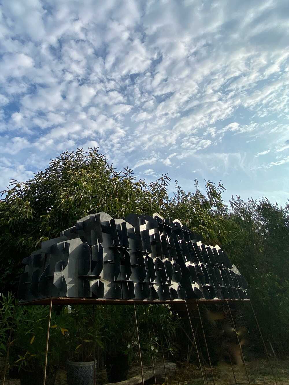 Diese Arbeit entsteht aus alten Dachziegeln (Schiefer).