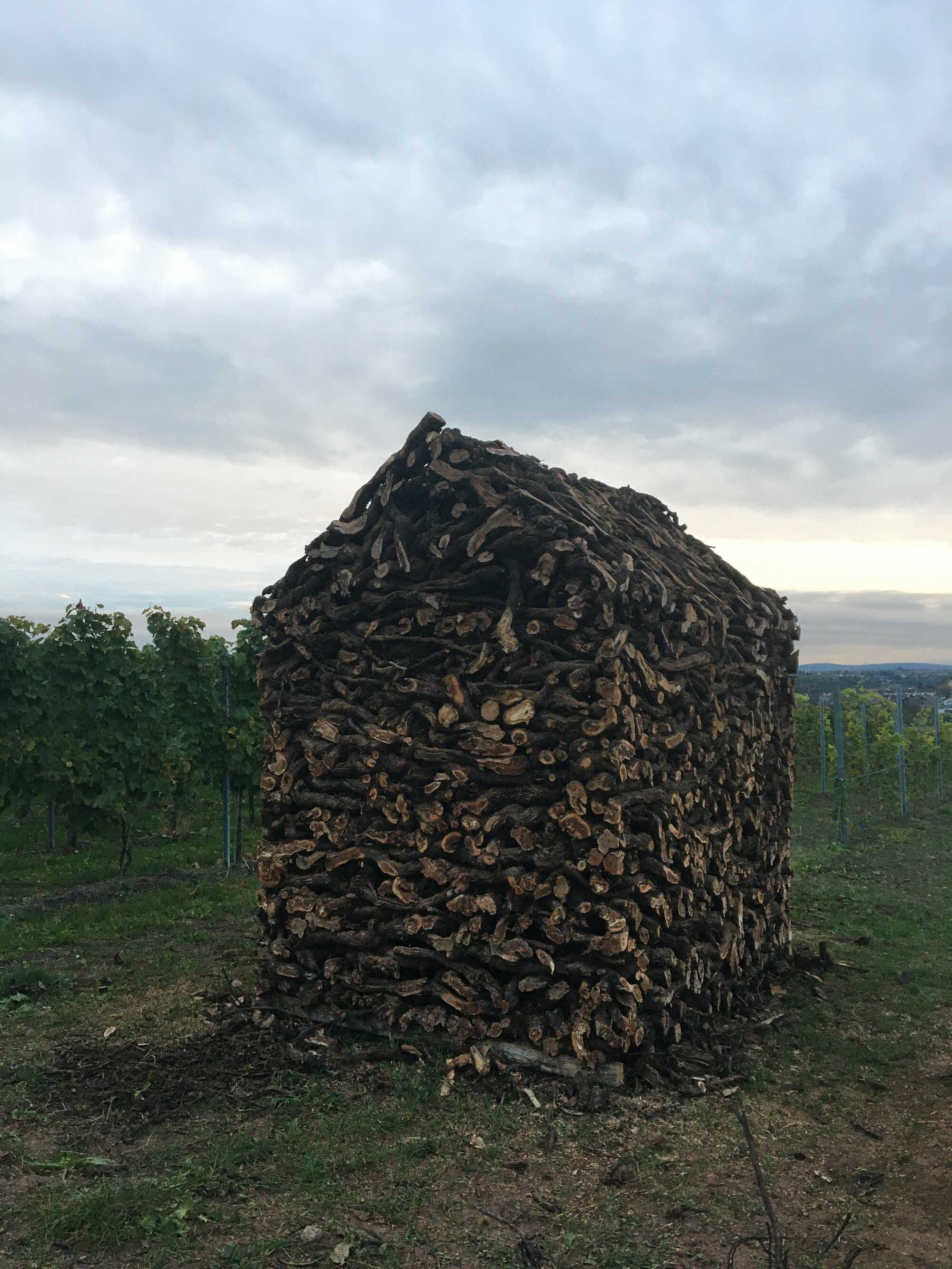Rebstöcke zu einer "Weinberghütte" zusammengefügt.