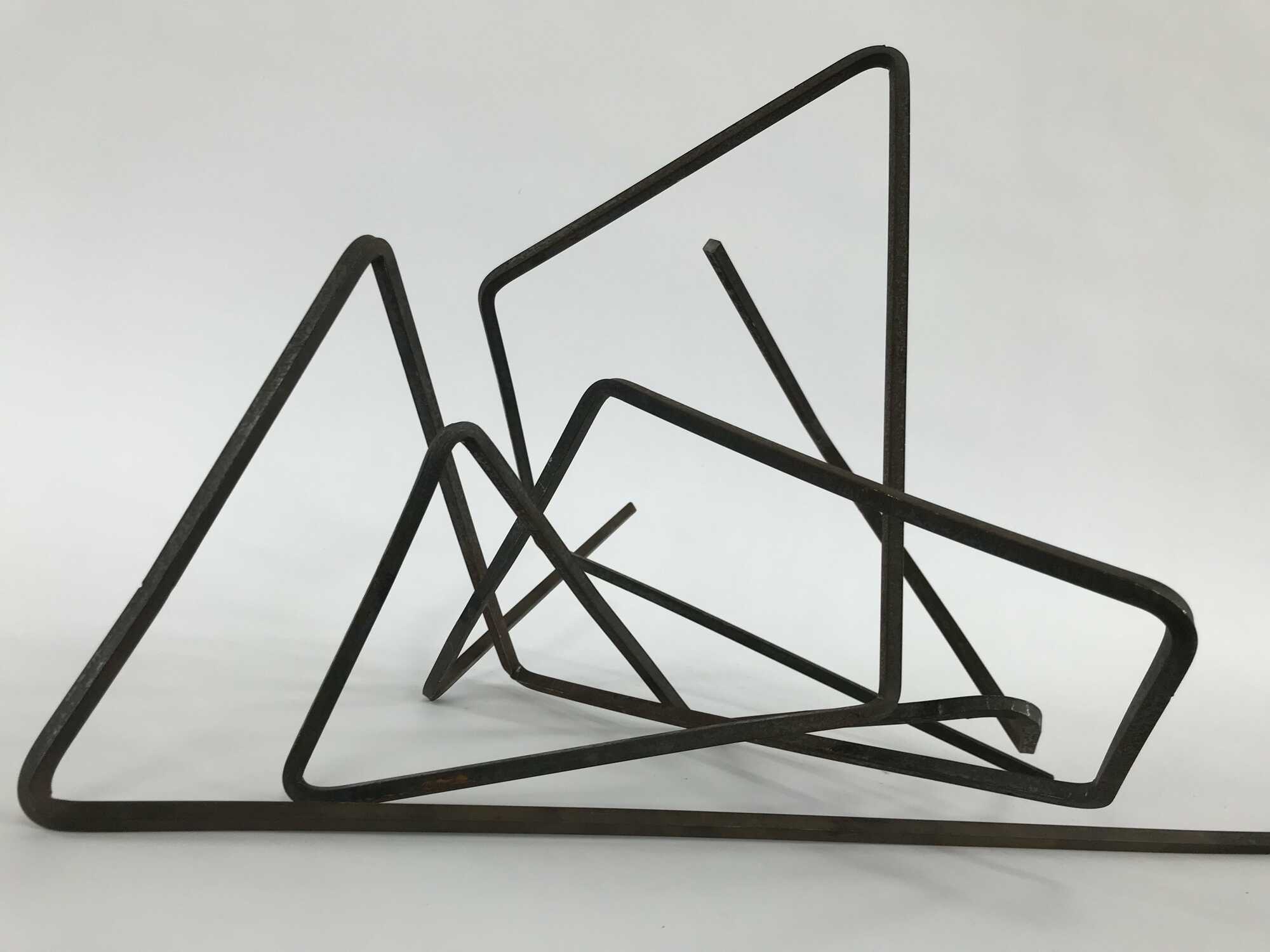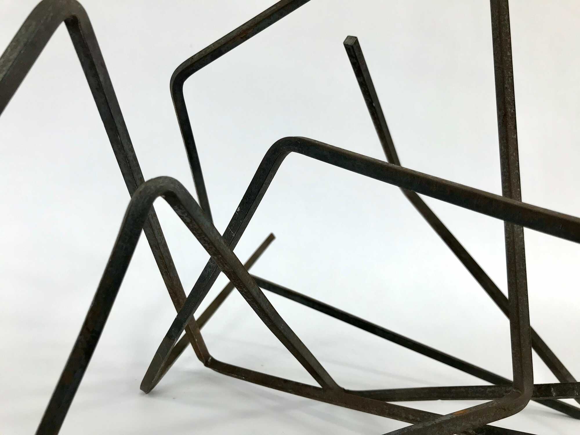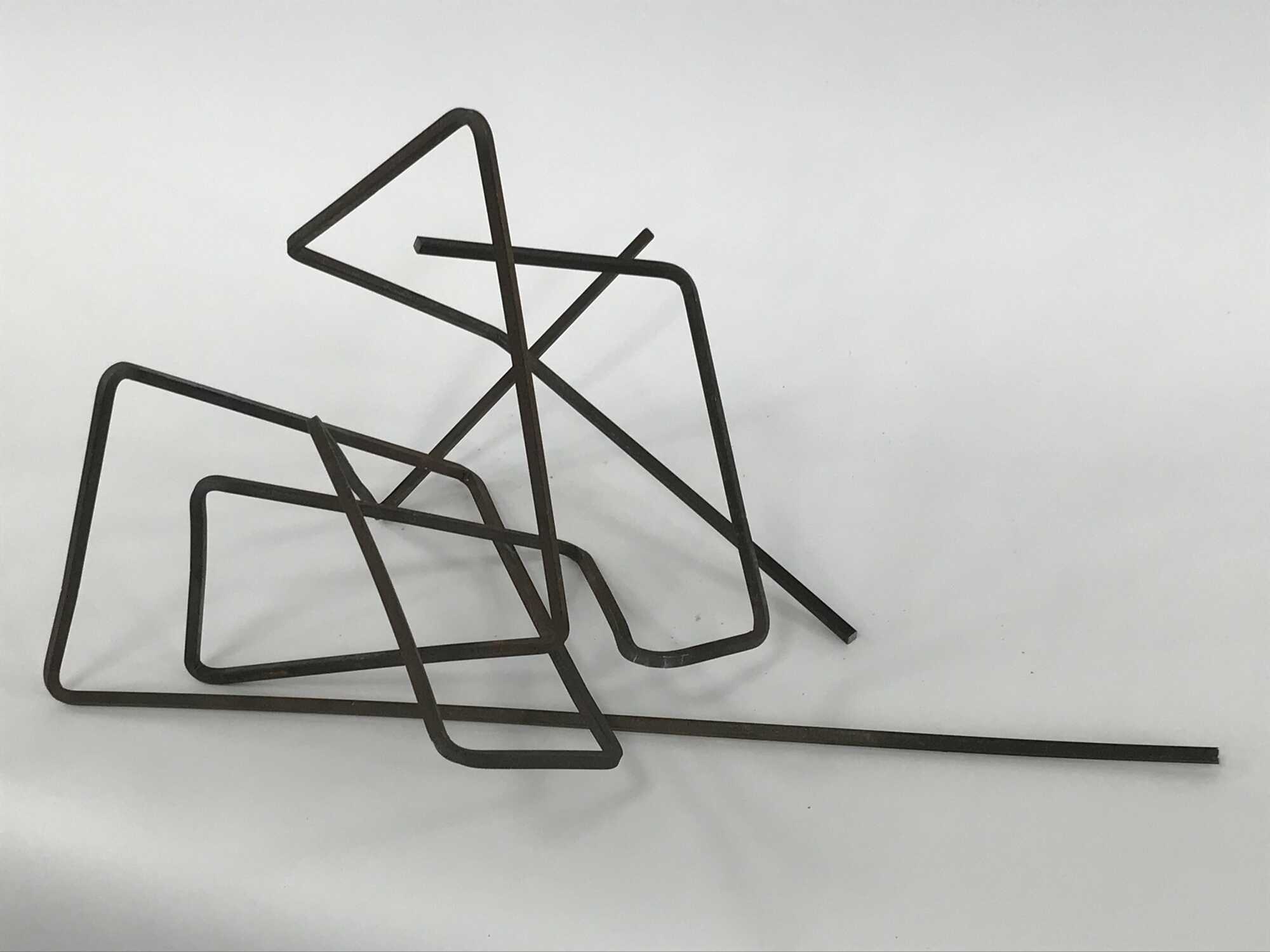 Durch Biegen der Stahlstäbe entstehen Raumlinien, zwei Raumlinien ergeben ein Ganzes. Ein Spiel mit Raum und Dimension.