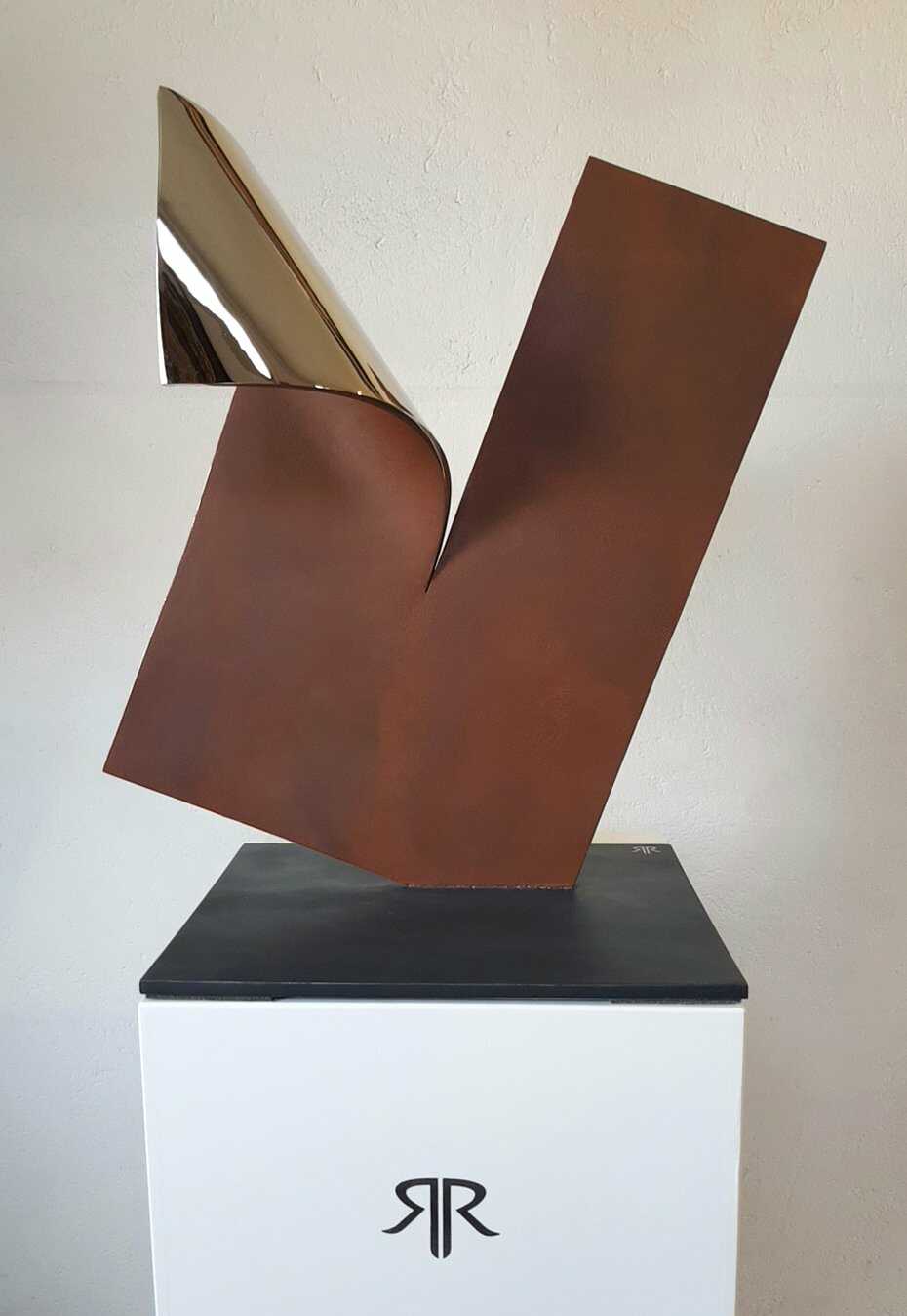 Rusty and chrome steel abstract sculpture