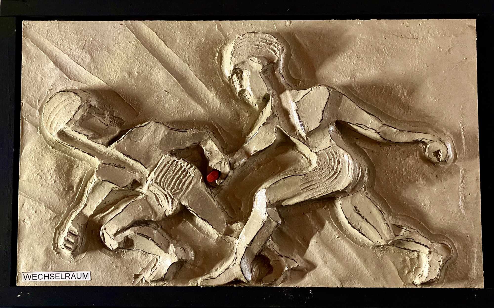 Wandrelief für den Vorraum einer Sport und Kulturhalle. Das Foto zeigt ein Vormodell aus Ton