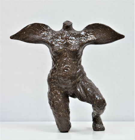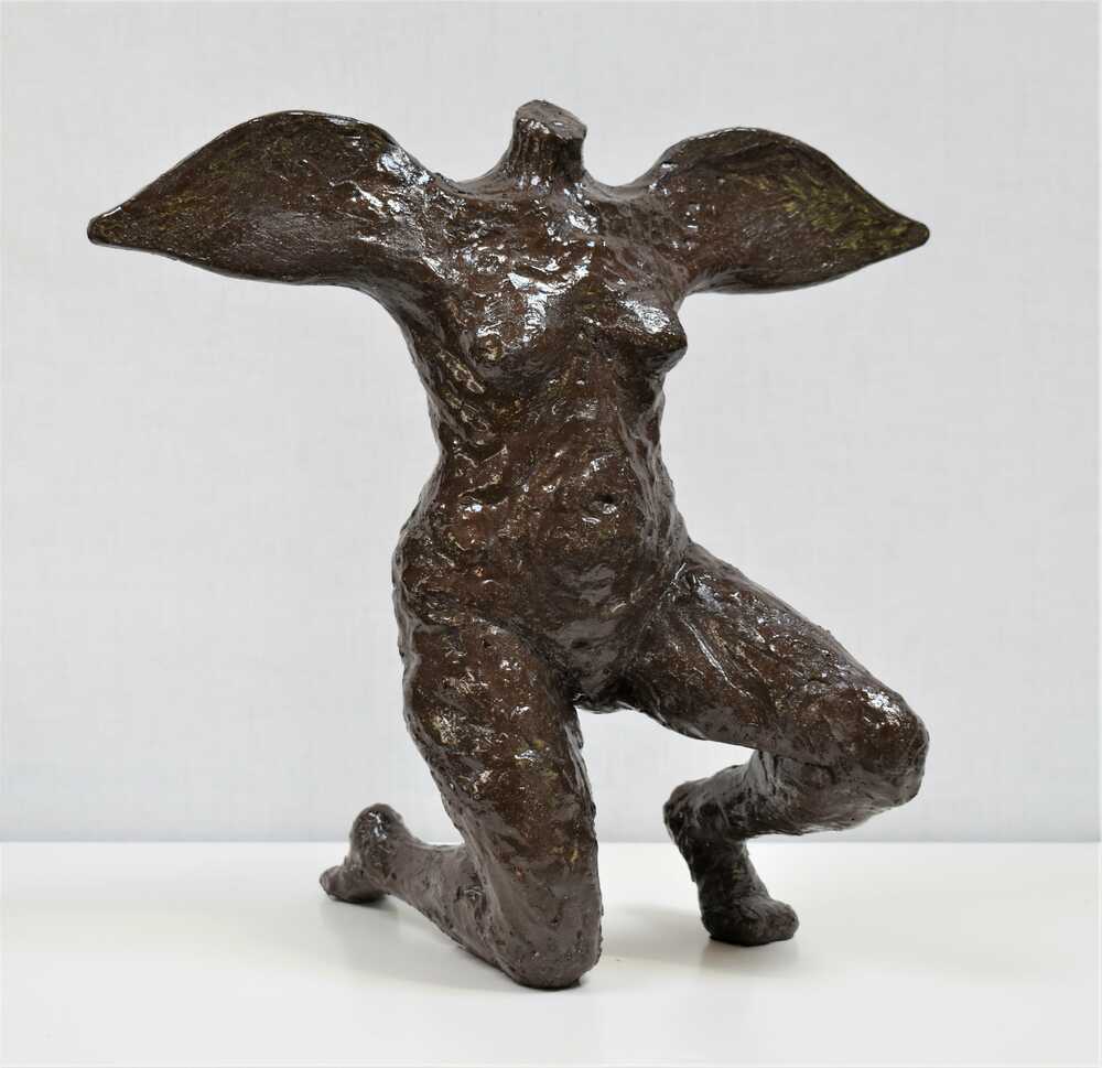 “About Freedom” shows a similar sculpture to "Arise, but more powerful. She is powerful brown. The legs are more active and wings are attached to the torso. This woman gets up and spreads her wings. She is powerfully present, but has not yet fully grown.