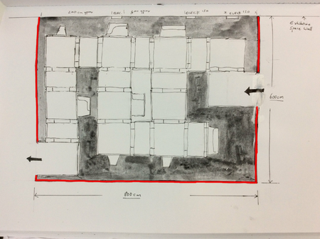 There are numerous ideas, both visual and conceptual, that form the basis for this particular work, with the dialogue between the initial ideas and the changing construction of the work producing further elements within the overall structure, and initiating further ideas to follow. The work can be seen to mirror its own creation, taking on a life of its own. As if it was not an act of construction, but the result of the uncovering of a pre-existing site.
