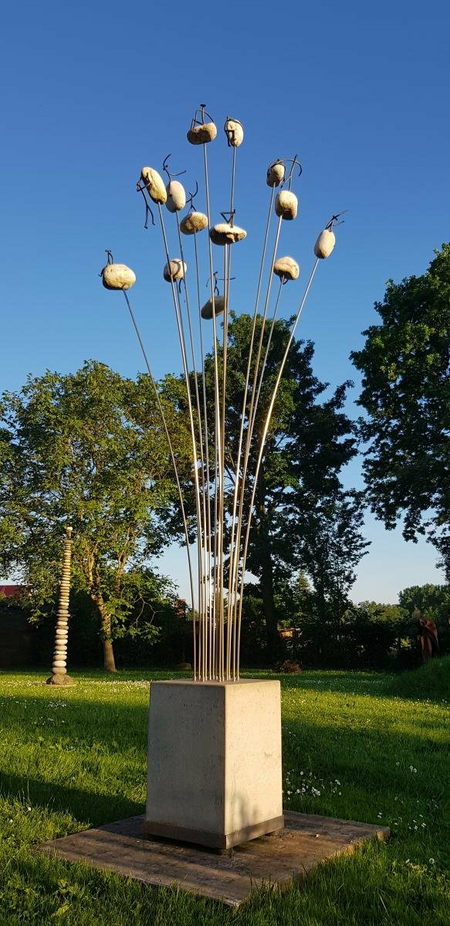 Created in Mexico 2009. Material: Stainless steel, river stones, copper, concreat