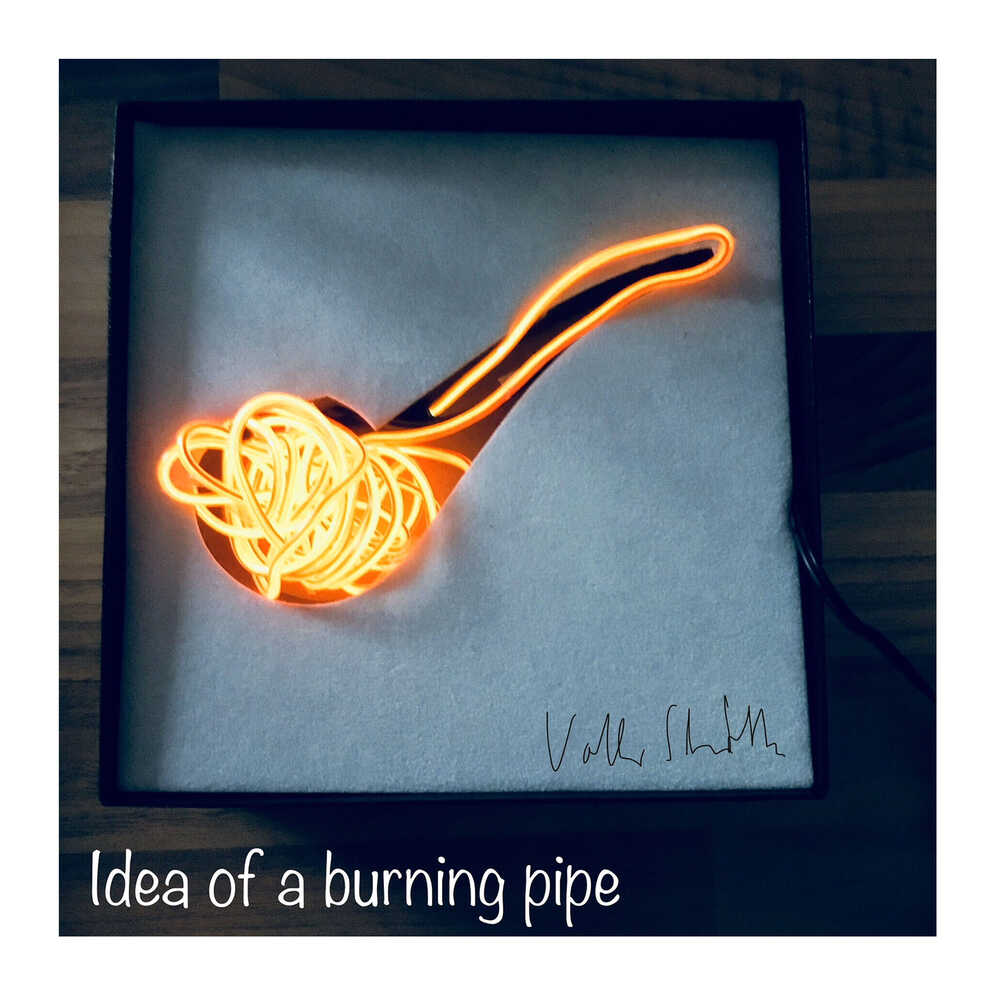 "Idea of a burning pipe"; Pipe packaging and electroluminescent orange wire; 2AA Batteries