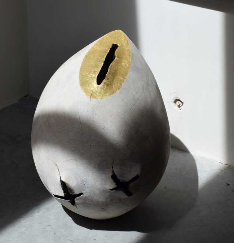 Balance. Oak and leave gold. Burned from the inside with fire.