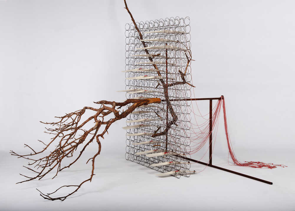 Strings, this piece is a contemporary version of the classic fairground attraction "Pulling Strings". Instead of worthless prices, you can win new life. The embryos represent the circle of life by eating their own tail (Uroboros). The prices are no surprise; following the thread you can influence the outcome. Natural selection in the hands of people follow other criteria, than when it's left to run its course. How does it feel to have the power in the selection of new life?