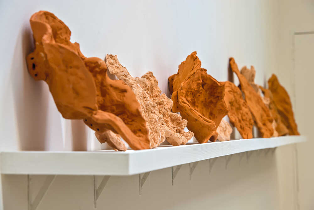Containers of Communal Ritual, Terracotta hand pressed moulds of various megalithic surfaces following a performance around Gozo-Malta