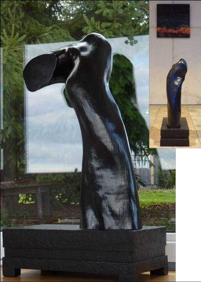 -- Großer Schwarzer -- Weidenwurzelholz, Tusche poliert, ESG-Bruch; zwei Ansichten