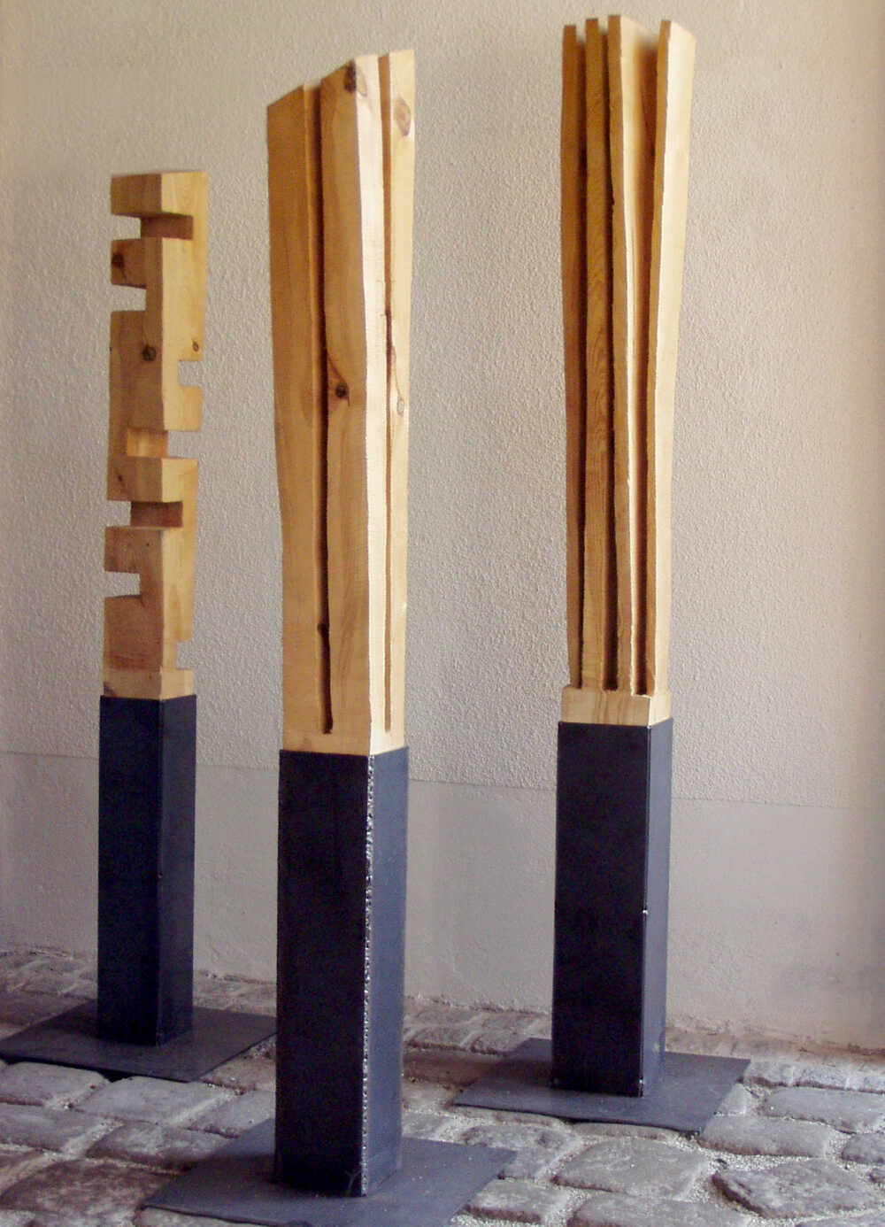 streng geometrisch gearbeitetes frisches Holz sprengt durch Trocknen die Form