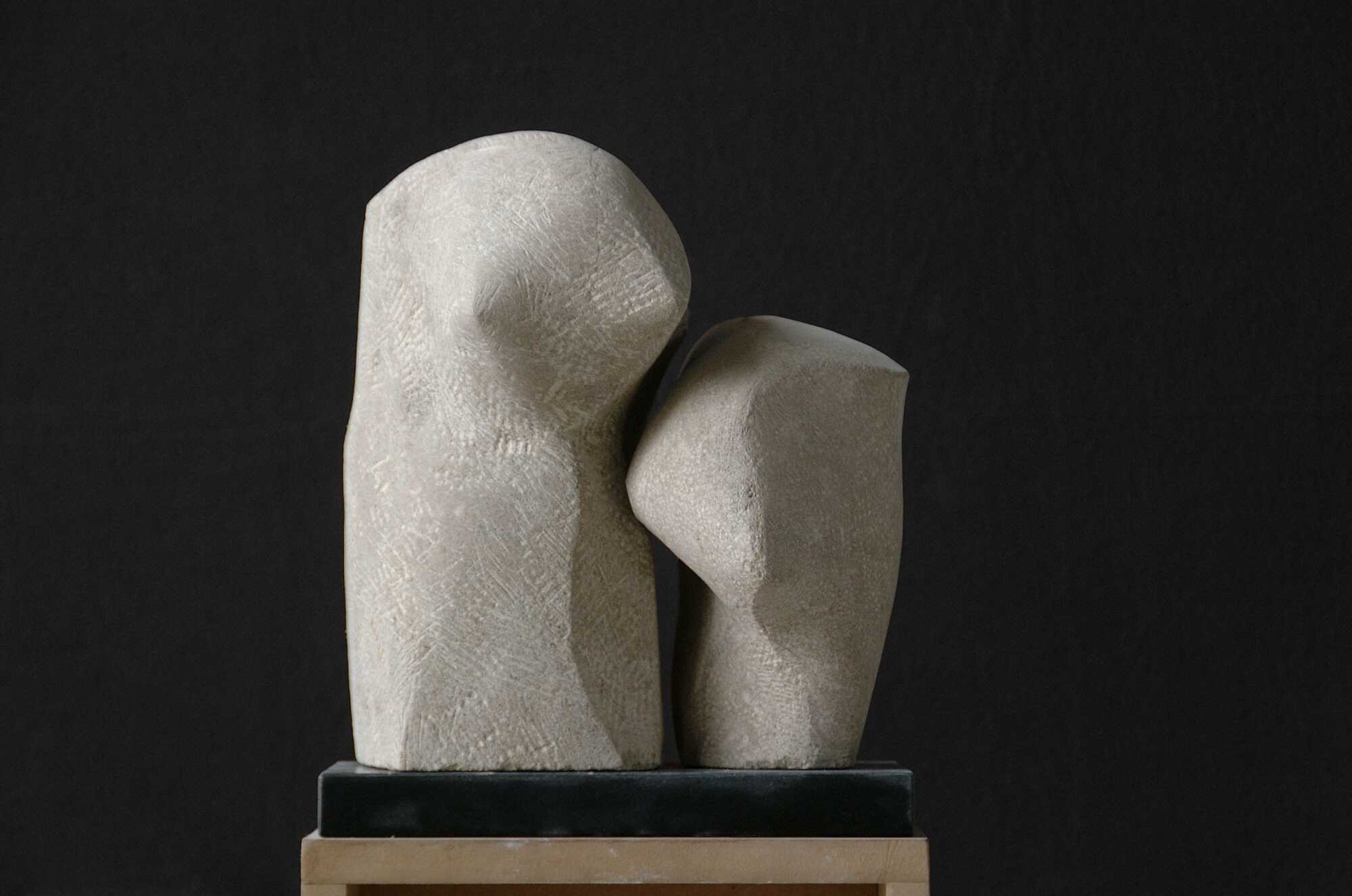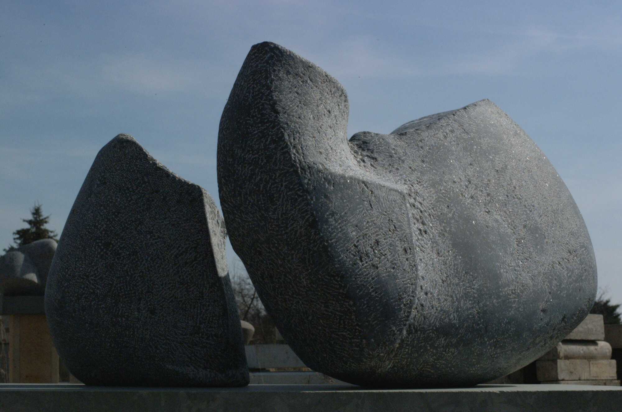 Konstellationen von zwei oder mehreren Teilen verdeutlichen, dass mit der Bearbeitung eines Steins auch der umgebende Raum gestaltet wird. Der Zwischenraum zweier Skulpturen kann als optisches Spannungsfeld beinahe die Qualität eines dritten Körpers gewinnen.