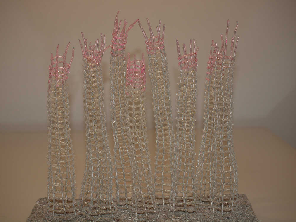 Objekt 1 - pflanzlich, Glasperlen, Draht, Holz