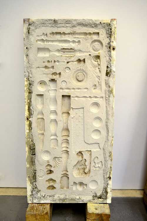 Gateway, Plaster Moulds with found windows and pressed furniture pieces in wood carving.