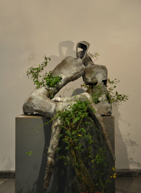 Der Kuss: Inspired by Gustav Klimt’s famous Kuss, this sculpture explores the relation and integration of human love and nature. As the two figures entwine, so the plants interweave, uniting the sculpture and becoming a part of it. Like the plants, the couple’s love starts from a small seed, grows and blooms, yet is also subject to influence and change from the world.