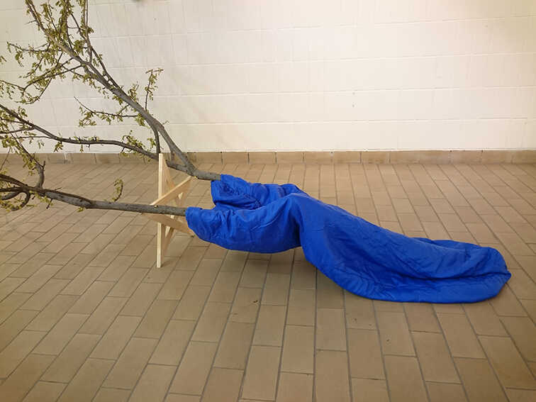 SLEEPING WITH THE STARS. Sleeping bag, wood and…