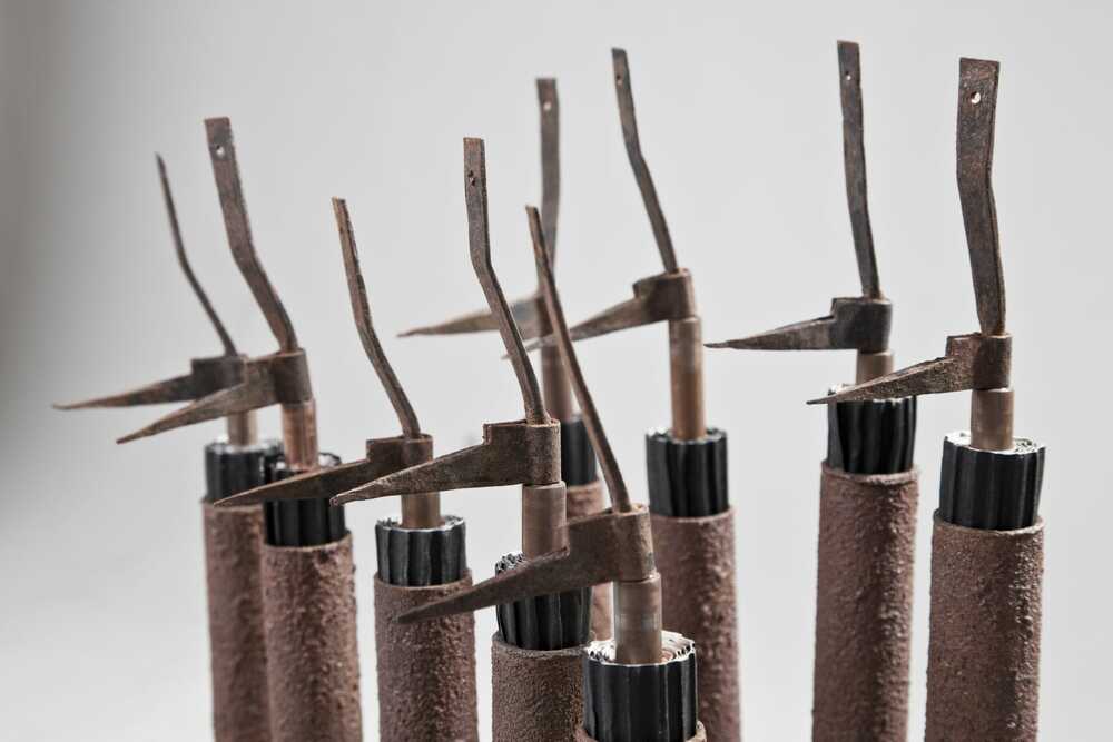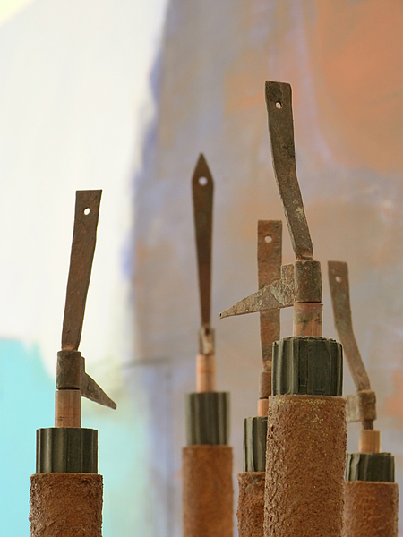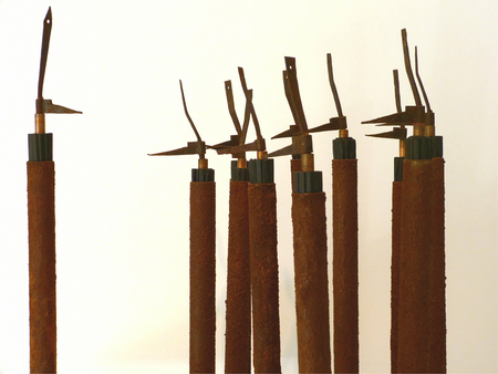 alte Fensterbeschläge,Wellpappe, Karton, Eisenfeilspäne, Metallständer