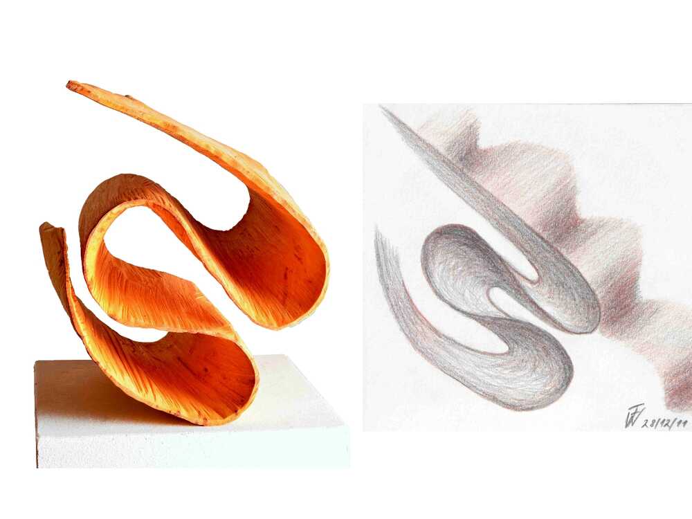 Mäander 3- Zeichnung und Skulptur Rötel/Grafit…