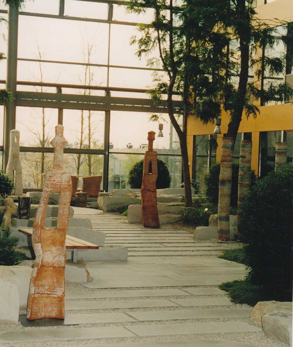 Skulpturengruppe im Japanischen Garten, LBS- Berlin-Hannover, Keramik, frost fest