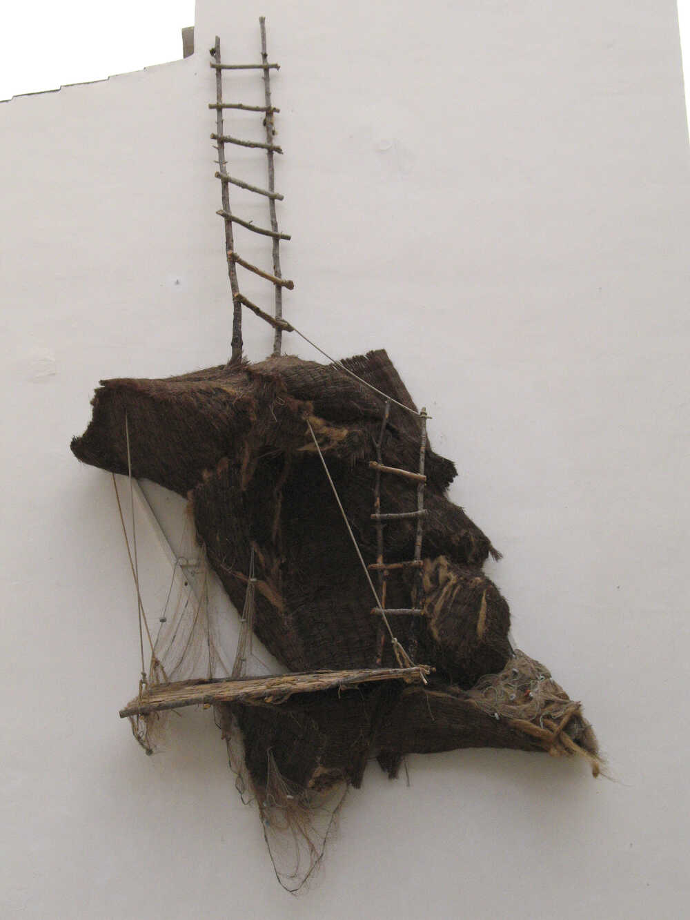 Heather, reeds, hemp rope, branches, nets and metal structures