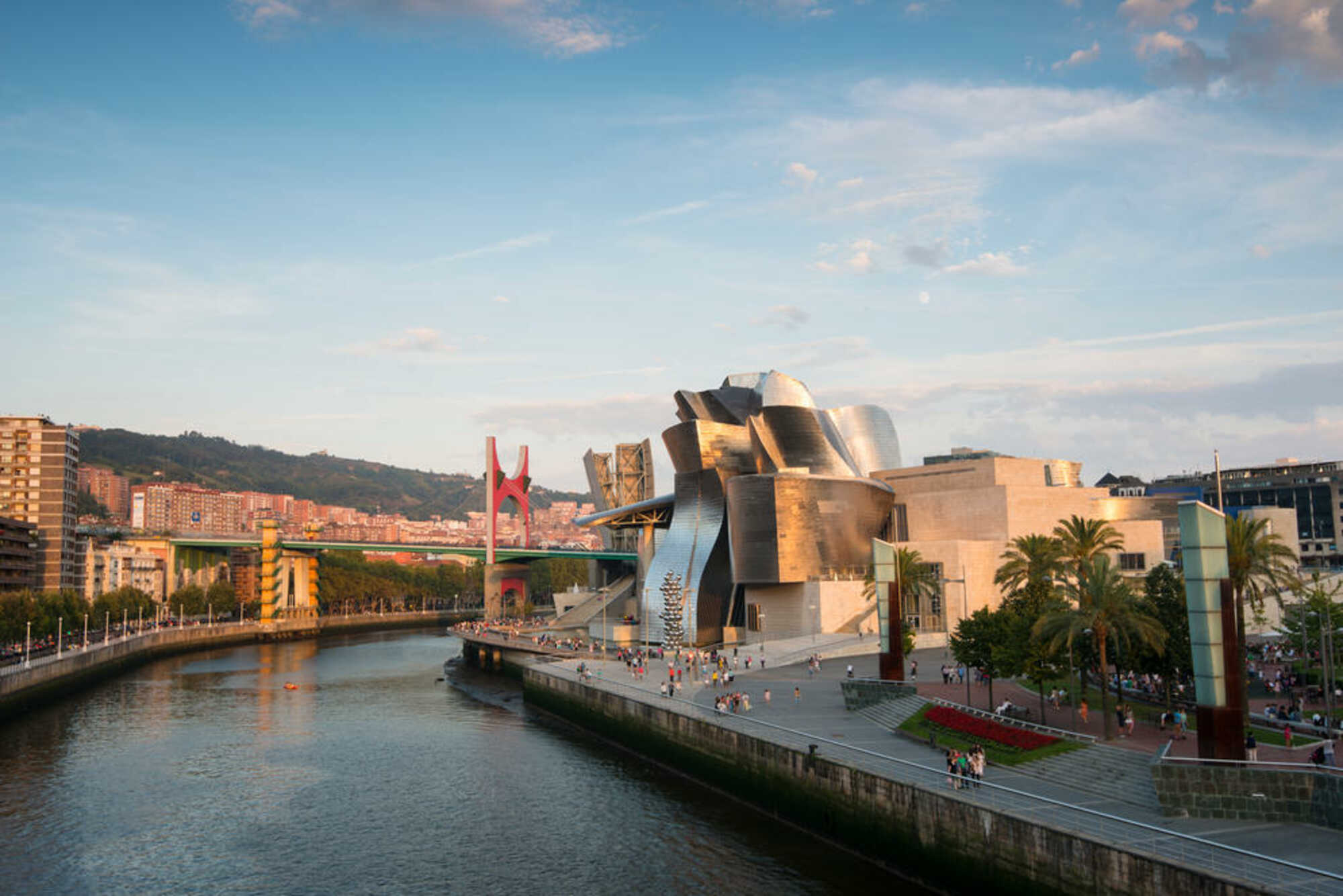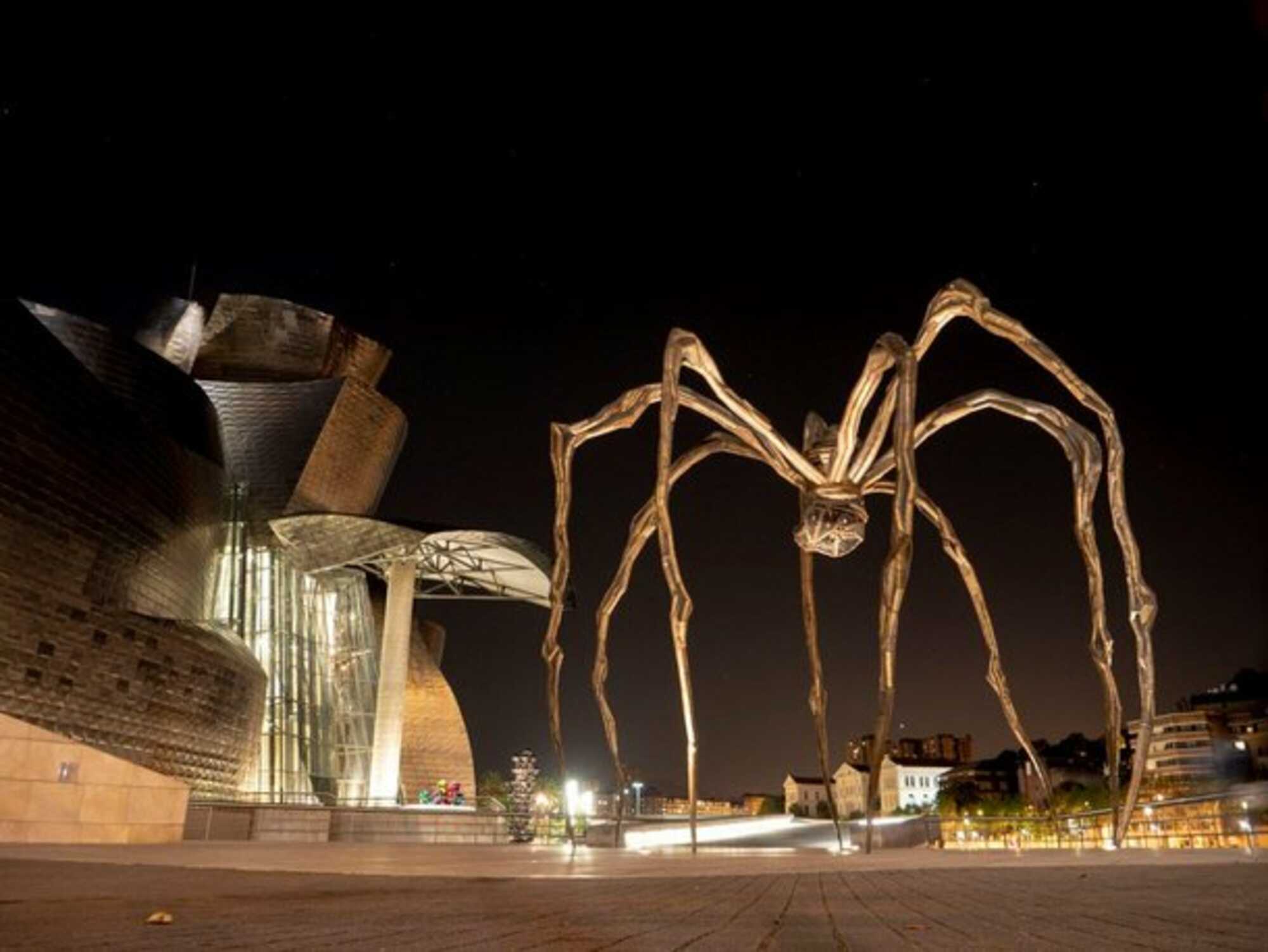 Einundzwanzig Jahre ist es her, dass in der baskischen Industriestadt Bilbao eine  Dependance des New Yorker Guggenheim-Museums eröffnete. Es war das erste Museum der Welt, dem es gelang, einer Stadt ein völlig anderes Gesicht zu geben und ihr neue wirtschaftliche Perspektiven zu eröffnen. Die Metropole des Baskenlandes hatte lang vom Schiffbau und von ihrer stahlverarbeitenden Industrie sehr gut gelebt. Die weltweite Überproduktion an Stahl stürzte Bilbao jedoch in den siebziger und achtziger Jahren in die Krise. Fabriken mussten schließen, die Arbeitslosigkeit stieg auf beinah dreißig Prozent. Das Flussufer des Nervión war gesäumt von leeren Fabrikgebäuden. Die Regierung des Baskenlandes verstand, dass Bilbao einen neuen Plan für die Zukunft brauchte. Gleichzeitig hatte die New Yorker Guggenheim-Stiftung gerade angekündigt, ins Ausland zu expandieren. „Das Timing passte perfekt“, sagt die Guggenheim-Kuratorin Petra Joos bei einem Besuch von sculpture network in Bilbao. Anfang der neunziger Jahre bot das Baskenland dem damaligen Guggenheim-Chef Thomas Krens an, die Kosten für ein neues Museum in ihrer Stadt komplett zu übernehmen: Dazu gehörten die Bausumme von hundert Millionen US-Dollar und der jährliche Unterhalt in Höhe von zwölf Millionen Dollar. Den Auftrag bekam der amerikanische Architekt Frank O. Gehry. Am Ufer des Nervión gelang ihm ein spektakuläres, titanglänzendes Bauwerk, das Bilbao schlagartig auf die Weltkarte der Kulturmetropolen setzte. Bilbaos schillerndes Wahrzeichen lockte Touristen, Unternehmen und Kreative an. Mit der Wirtschaft geht es seither bergauf. Selbst die Weltfinanzkrise 2008 traf die Stadt weniger hart als das übrige Spanien. Der Bilbao-Effekt und das Wunder von Bilbao wurden sprichwörtlich und finden bis heute viele Nachahmer: vom spanischen Santander bis nach Abu Dhabi, wo eine ganze Museumsinsel die Stadt auf eine Zukunft ohne Ölreserven vorbereiten soll. Wie sehr das Guggenheim Bilbao fasziniert, zeigt auch der jüngste Roman des Thriller-Autors Dan Brown (Der Da-Vinci-Code, Inferno). In Origin (2017) nimmt die Beschreibung des Museums und seiner Kunstwerke dutzende Seiten in Anspruch.