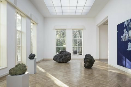 Der gebürtige Brite William Tucker (*1935) ist international einer der anerkanntesten Bildhauer seiner Generation. Seine Bronzekörper zeugen von einer kraftvollen Sprache zwischen Figuration und Abstraktion: Menschliche Körperformen und geologische Gesteinsformationen sind darin gleichermaßen motivisch enthalten. Sie berühren ihr Gegenüber und fordern existentielle Fragen heraus. Der Berliner Künstler Kai Schiemenz (*1966) arbeitet seit vielen Jahren mit Glas. Natürliche Formationen aus Bruchstein überträgt er in diesen besonderen Werkstoff. Die lichtdurchlässige Qualität des farbigen Glases verleiht ihnen Edelsteincharakter und lenkt den Blick in eine beseelte Tiefe. Schiemenz gehört zu einer jüngeren Künstlergeneration, die das klassische Medium der Skulptur und seine vielschichtige Dimension in einen Resonanzraum des 21. Jahrhunderts weiterdenkt. Der in der Schweiz geborene und in Leipzig arbeitende Maler Stefan Guggisberg (*1980) schafft in seinen Ölarbeiten auf Papier berauschende Farbräume. Der Künstler setzte sich, wie Tucker und Schiemenz, wiederkehrend mit dem Motiv und der Materialität von Gestein auseinander. Das konkrete Objekt erweitert sich in seiner brillanten Malerei zu atmosphärischen Sinneseindrücken, dabei lotet er die Pole zwischen Schärfe und Unschärfe aus. Ob als gegossener Bronzekoloss bei Tucker, als fragiles Glasobjekt bei Schiemenz oder als aus Farbpartikeln sich Zusammenfügendes bei Guggisberg: Hier treffen die elementaren Gegensätze von Einfachheit und Erhabenheit, Massivität und Zartheit aufeinander. Die kraftvollen und zugleich stillen Werke konfrontieren ihr menschliches Gegenüber durch ihre starke Präsenz im Raum mit seinem In-der-Welt-Sein. Diese existenzielle Auseinandersetzung ist fortwährend aktuell und universal und auch deshalb in einer Zeit immer flüchtigerer Werte gesellschaftlich relevant.