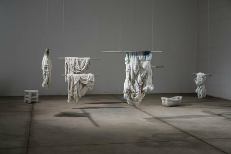 Sigalit Landau (b. Jerusalem, IL, 1969) is one of Israel’s most prominent contemporary artists of her generation. For over fifteen years, the Dead Sea has been a source of inspiration and a laboratory for Landaus’ video works, photographic series’ and salt sculptures. Her site-specific work, in a variety of mediums, relates to private and collective memory, archaic and utopic myths, and to present day issues of the human condition. Using a diverse range of materials, while interacting with the human body, Landau weaves the social with the intimate, the historical with the private, the local with narratives of epic scale. The exhibition at the Museum der Moderne Salzburg will premier salt-crystallized sculptures and installations created by Landau throughout her years of work at the Dead Sea. Almost as a ritual, she and her team have been immersing objects in the saturated saline waters of this unique lake. Some of the submerged objects are hand made from specific and symbolic materials, e.g. fishing nets or barbed wire, others from personal belongings, and many of these objects stand for a world that has gone missing. Through the submersion in the water of the lake, these sculptures are then coated in salt-crystals, becoming fragile creations imbued with a terrifying beauty, reminiscent of archaeological finds that tell of the unceasing transformation of all things and of the darkest chapters in the history of the 20th century.