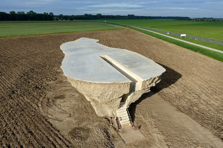 On the occasion of the 100th anniversary of the Zuiderzee Act, Bob Gramsma created in collaboration with Walt+Galmarini AG the monument Riff, PD#18245. Just like the polder, the artwork is created in several phases, each of which was important for the creation and meaning of the artwork. Like an archaeological find, the monument reminds of the special geology and the history of Flevoland. Riff, PD#18245 is a cast of the mark made by Gramsma in the Flevo polder soil; as such, it reflects the reclamation and artificiality of the polder.