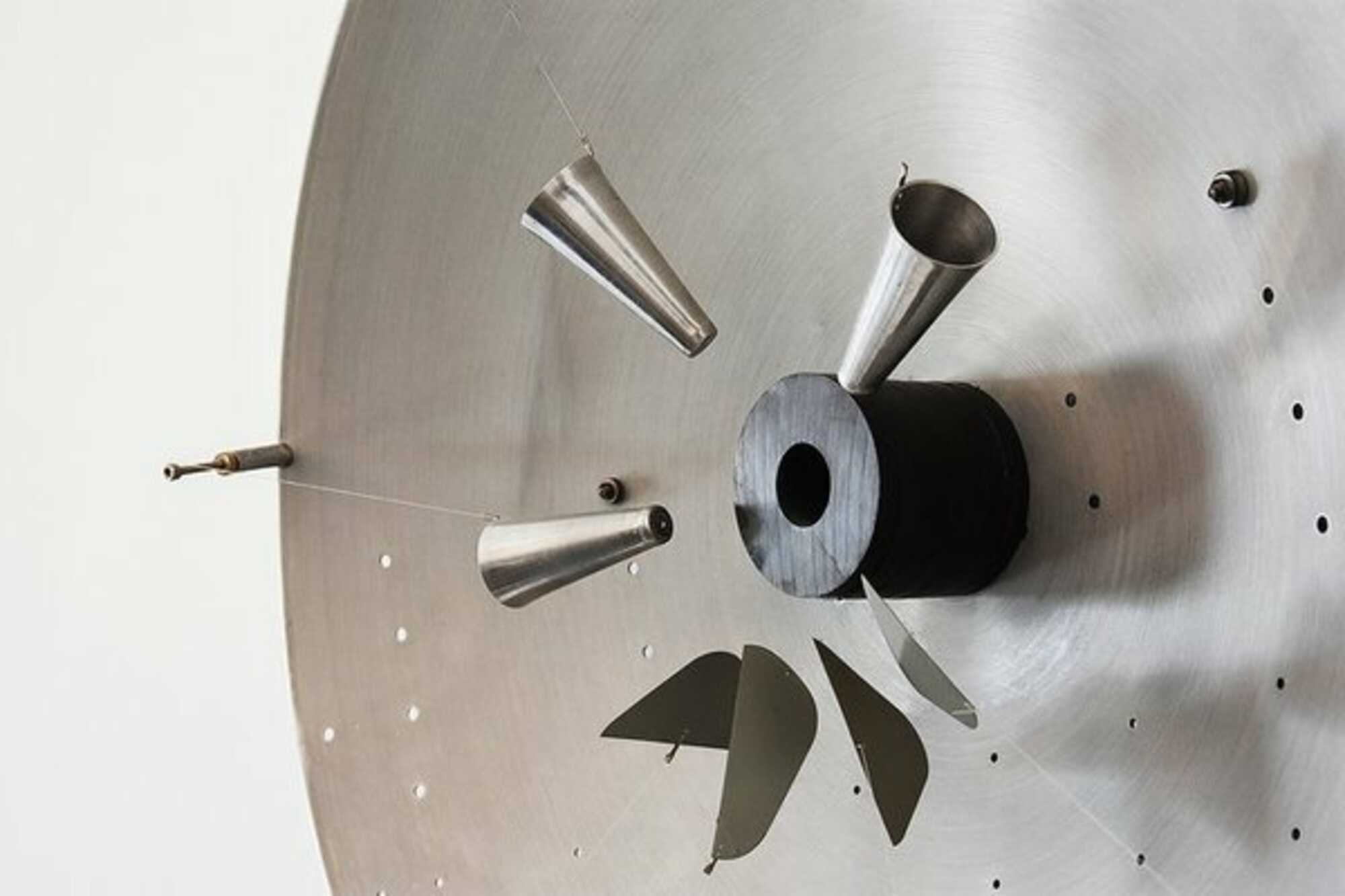 Since 1965, Takis has created new musical devices with magnets and electricity to produce sounds that he speaks of relating to the cosmos, ranging from single notes to thunderous ensembles. At the centre of the exhibition is a gallery dedicated to a sequence of Takisâ Musicals. The exhibition closes with Takisâ Musical Sphere 1985 and Gong 1978, made from the rusted wall of a tanker.Â