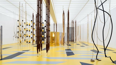 Wandlungsfähigkeit: Leonor Antunes In ihren raumgreifenden Installationen setzt sich die portugiesische Künstlerin Leonor Antunes (*1972) mit der Wandlungsfähigkeit der Skulptur und der modernen Formensprache auseinander. Seit den späten 1990er-Jahren hat die Künstlerin ortsspezifische Werke geschaffen, deren geometrische Formen und Vielfalt des Materials, darunter Leder, Nylon und Messing, auch für ihre aktuellen Arbeiten kennzeichnend sind. Parallel zur Erkundung der Materialität und zum Wechselspiel zwischen Skulptur und Architektur erforscht Antunes auch die historischen und sozialen Hintergründe von Persönlichkeiten aus Architektur, Design und Kunst jenseits des gängigen Kanons. Motive und Elemente, die sie unter anderem Möbelstücken, Textilien oder Druckgrafiken entleiht, bildet sie massstabsgetreu nach und löst sie von ihrer ursprünglichen Funktion. Auf diese Weise verarbeitet Antunes diese spezifischen Referenzen und verleiht ihnen eine skulpturale Gestalt.