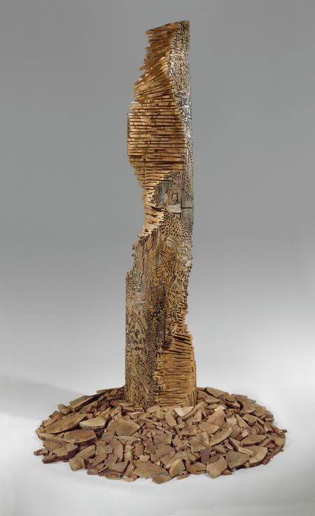 Image: El Anatsui, Erosión (Erosion), 1992, Madera, 297,2 cm, National Museum of African Art, Smithsonian Institution, USA, Purchased with funds provided by the Smithsonian Collections, Acquisition Program, 96-17-1, © El Anatsui, Photo: Franko Khoury