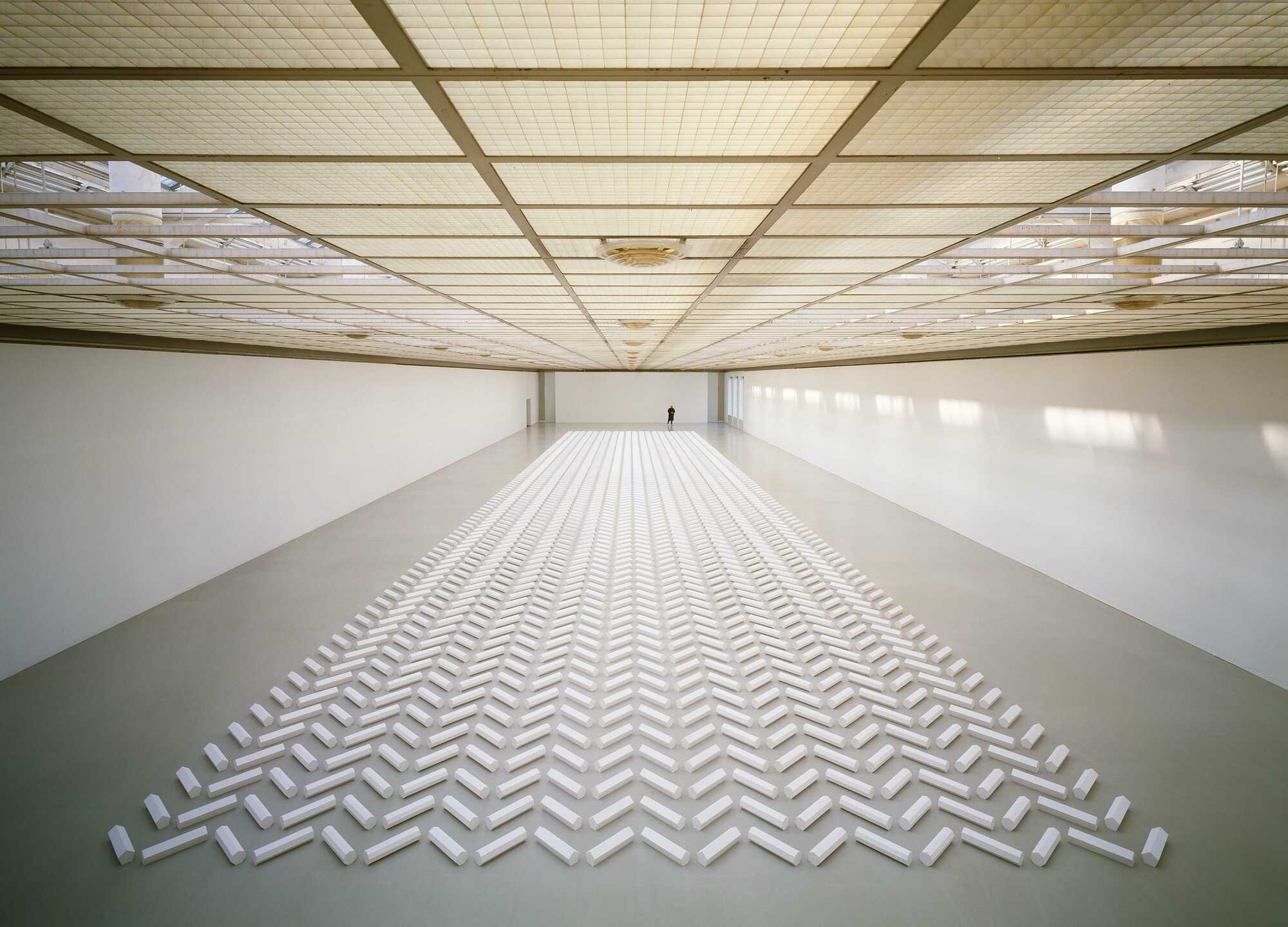 The 2000 Sculpture von Walter De Maria (1935 – 2013) ist eine der grössten Bodenskulpturen im Innenraum und entstand 1992 für eine Ausstellung im Kunsthaus Zürich. Damals lud Harald Szeemann den Künstler ein, eine neue Installation für den grossen Ausstellungssaal zu entwickeln.