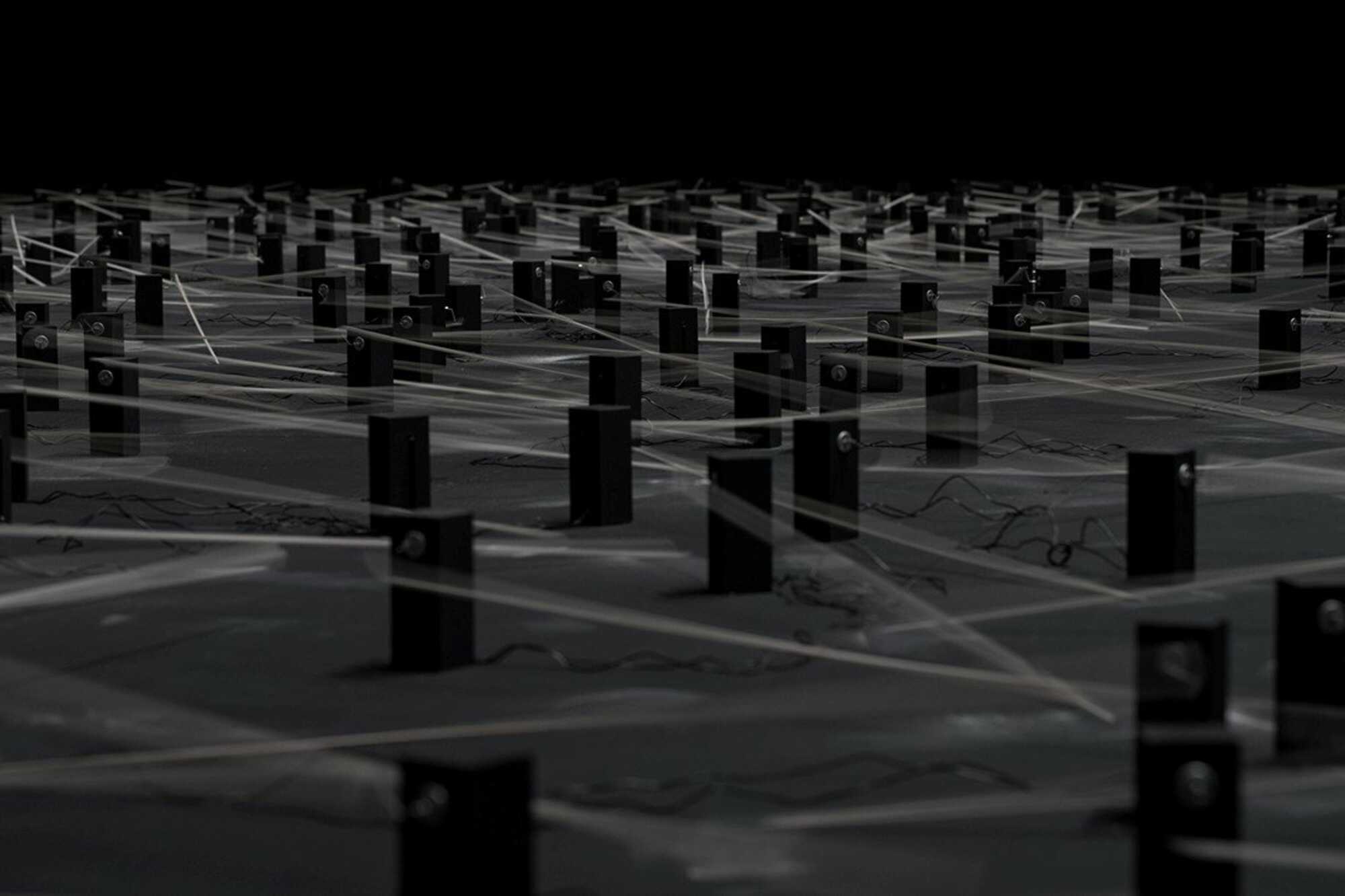 Kartonkisten, Metallscheiben, Holzlatten, Filzbälle – so banal die Gegenstände anmuten, die in der künstlerischen Praxis von Zimoun (*1977) zur Anwendung kommen, so spektakulär ist die Wirkung, die sie im Ausstellungsraum entfalten: In hundertfacher Ausführung und nach bestimmten Prinzipien angeordnet, werden sie mithilfe von ebenso vielen Gleichstrommotoren in Bewegung versetzt und zum Klingen gebracht. Die durch den Zufall mitbestimmten optischen und akustischen Muster lassen das Publikum in eine reizvolle Monotonie eintauchen, repetitiv und facettenreich zugleich.